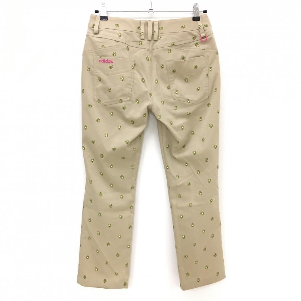 【美品】アディダス パンツ ベージュ×グリーン系 総柄 キウイフルーツ レディース L/G ゴルフウェア adidas