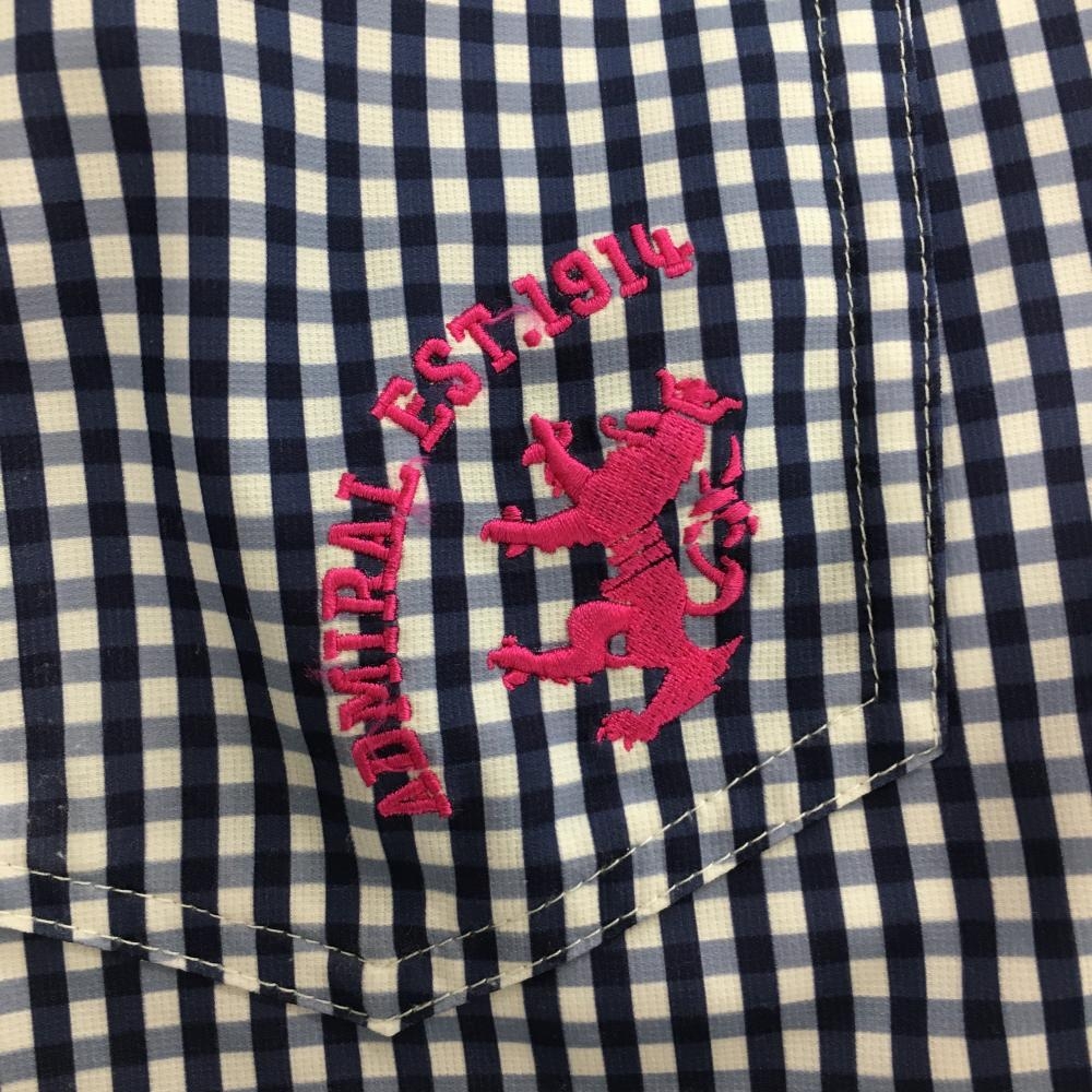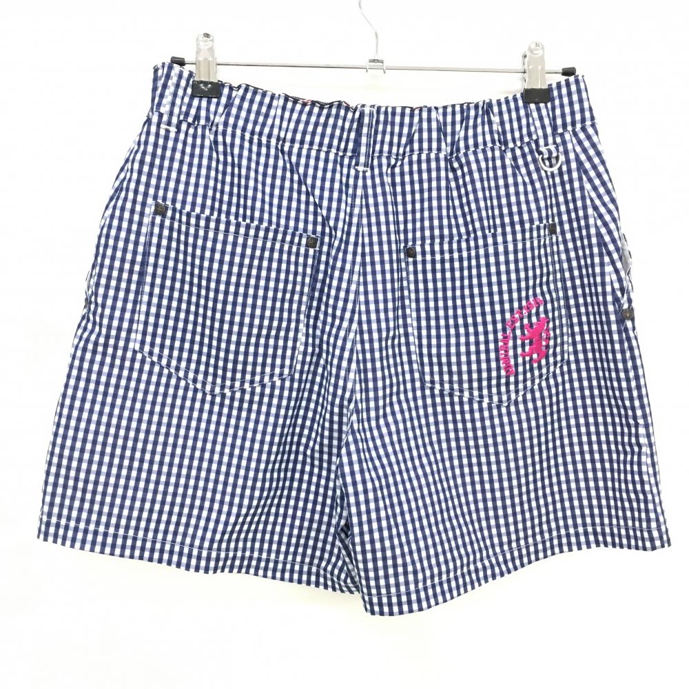 【美品】アドミラル ショートパンツ 白×ネイビー ギンガムチェック 裏地付き ウエスト後ろゴム レディース L ゴルフウェア Admiral