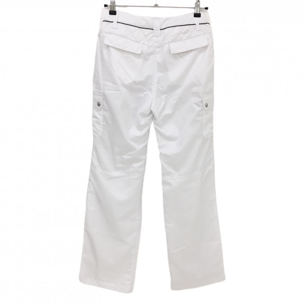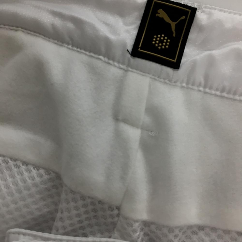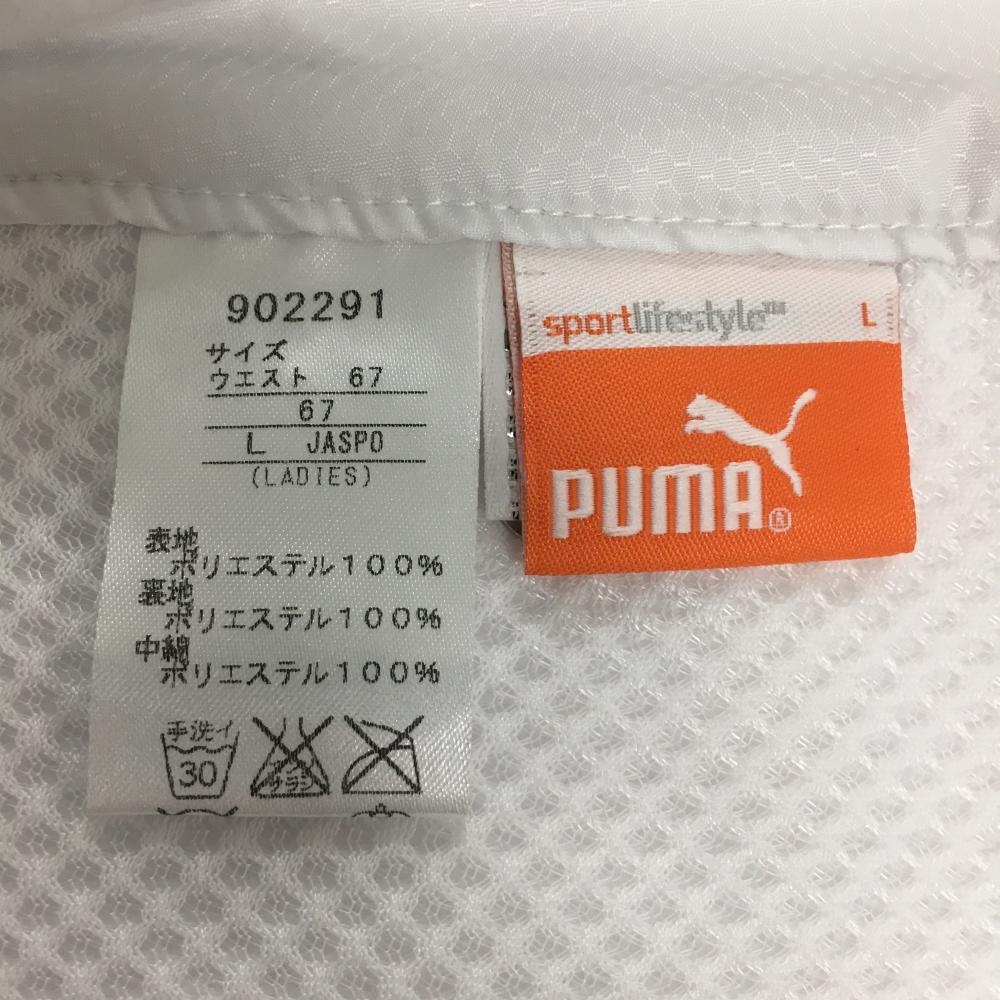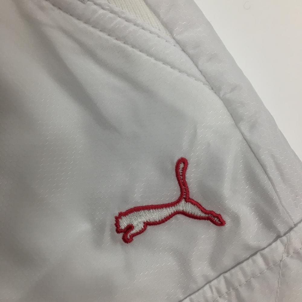 【超美品】プーマ ナイロンカーゴパンツ 白 地模様 内側一部微起毛 裏地メッシュ ロゴピンク レディース L ゴルフウェア PUMA