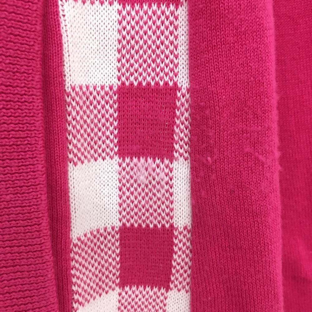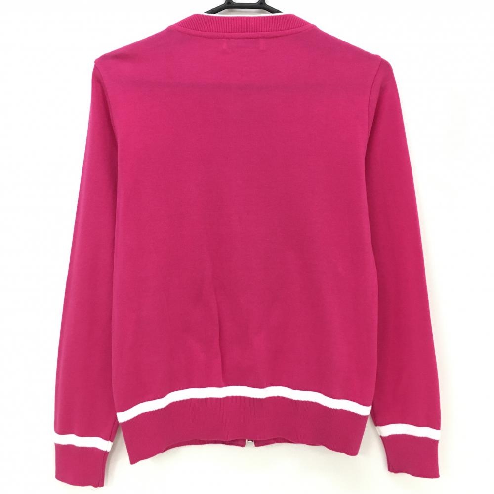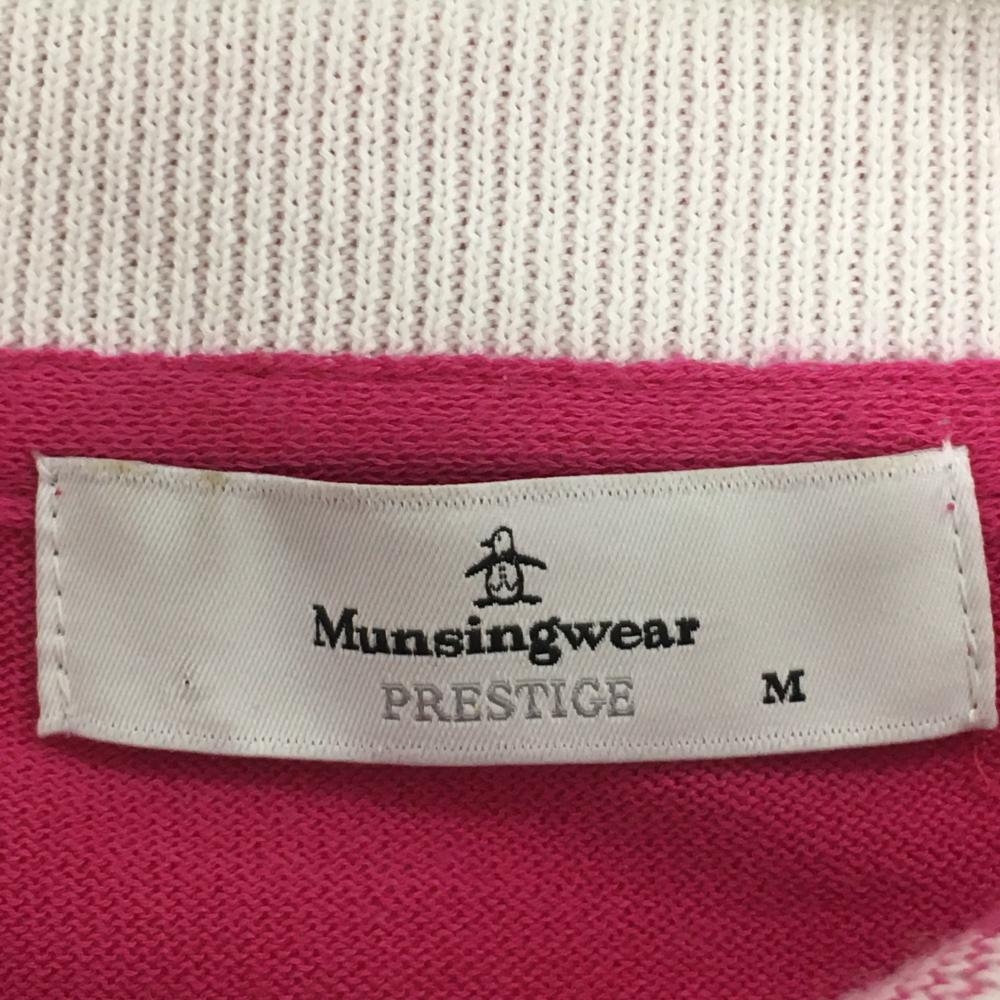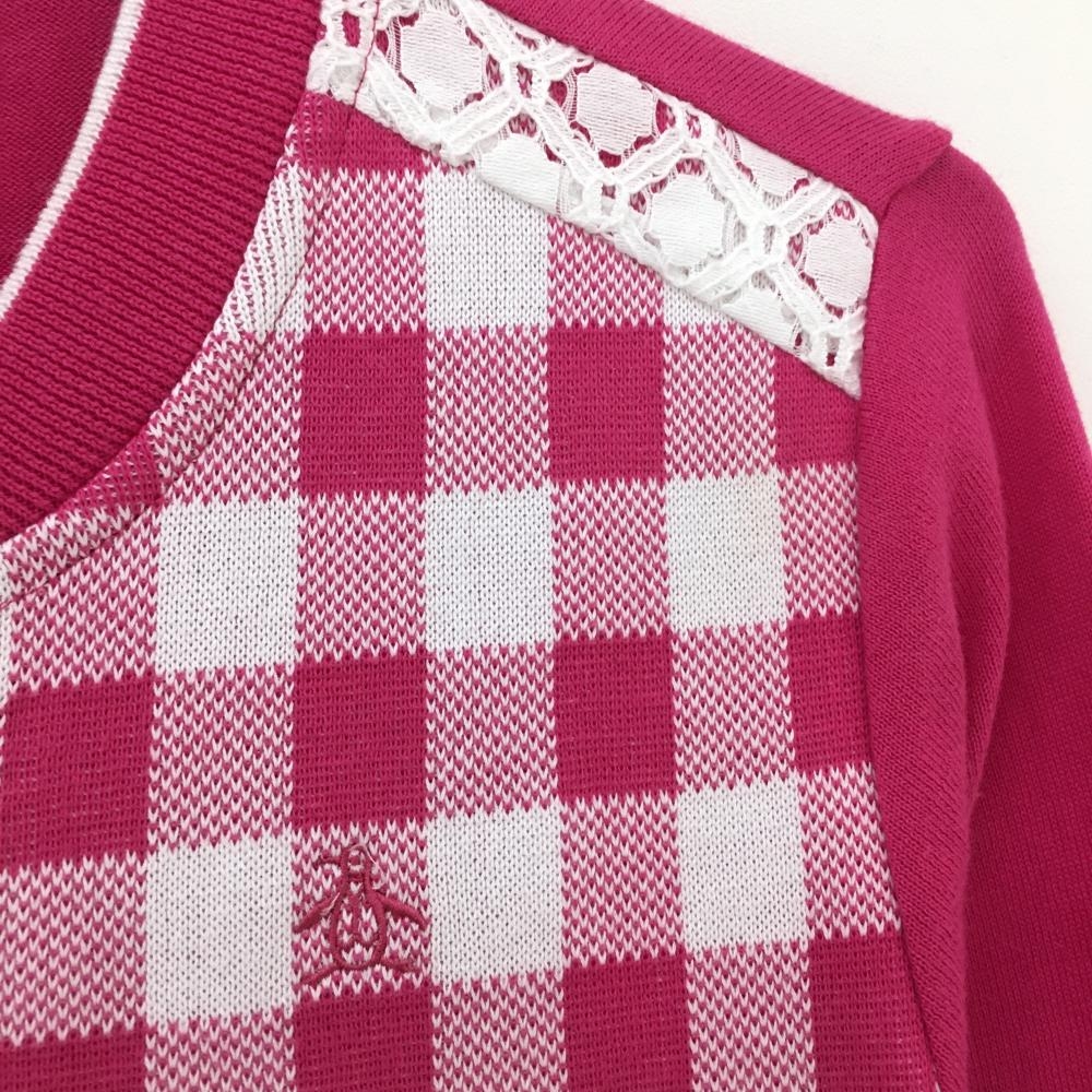 マンシングウェア ニットジャケット ピンク×白 前身頃チェック 肩レース ロゴ刺しゅう レディース M ゴルフウェア Munsingwear