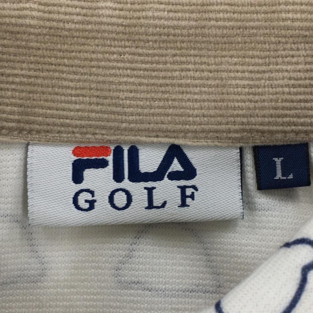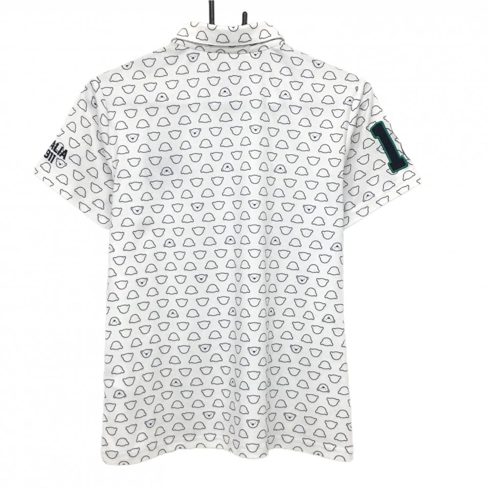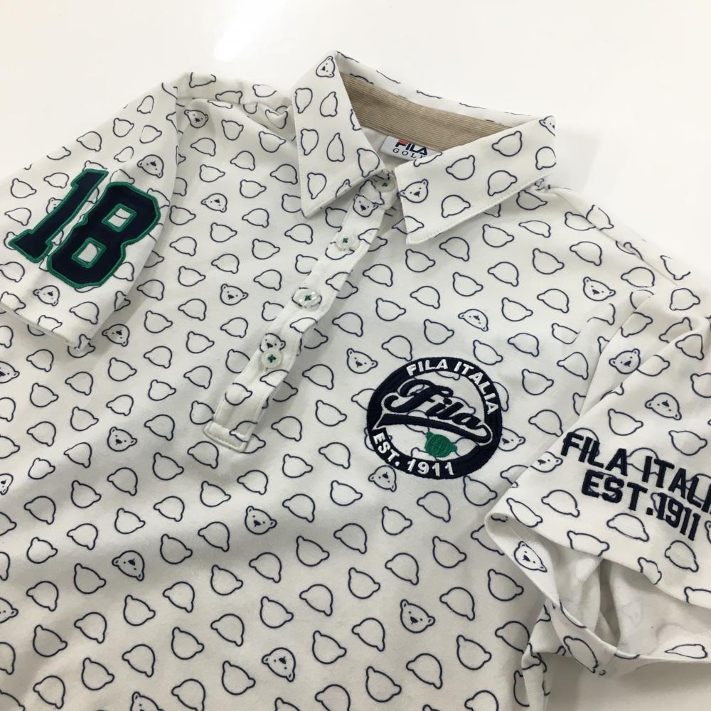 フィラゴルフ 半袖ポロシャツ 白×ネイビー クマ総柄 ロゴ刺しゅう レディース L ゴルフウェア FILA GOLF