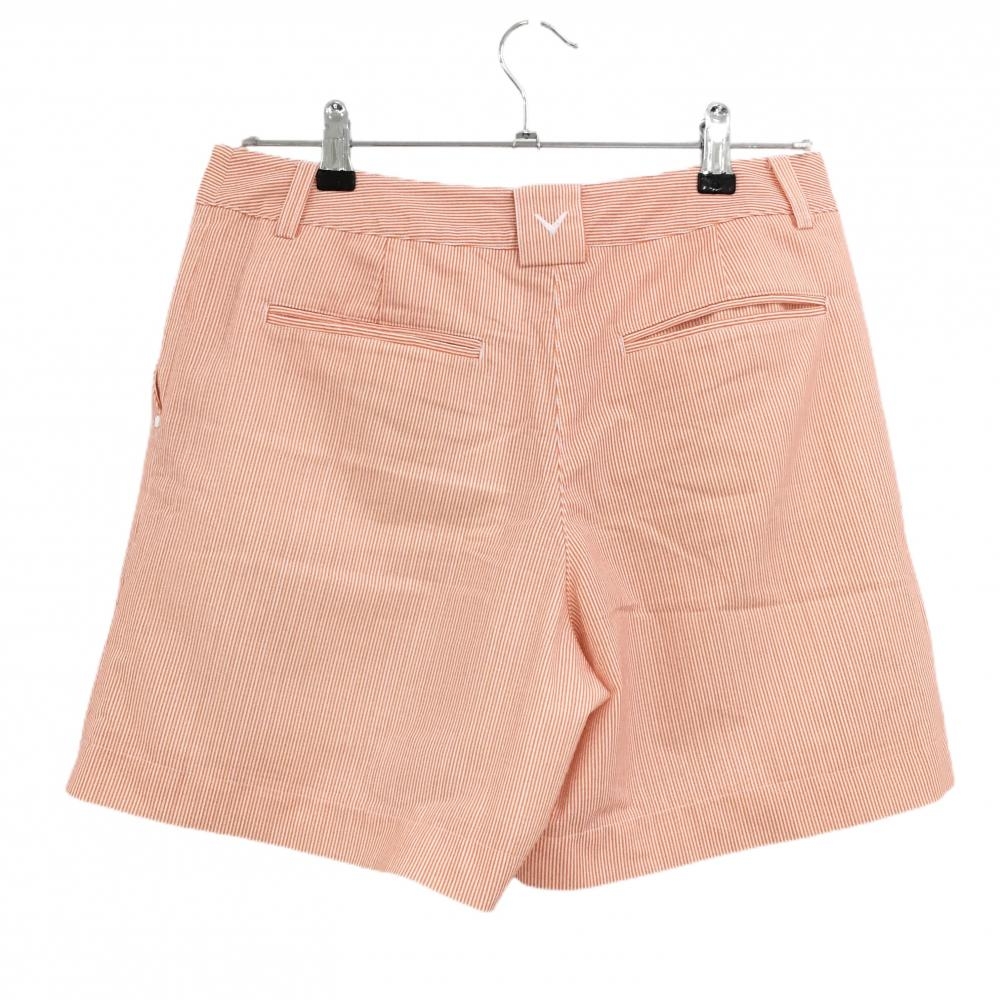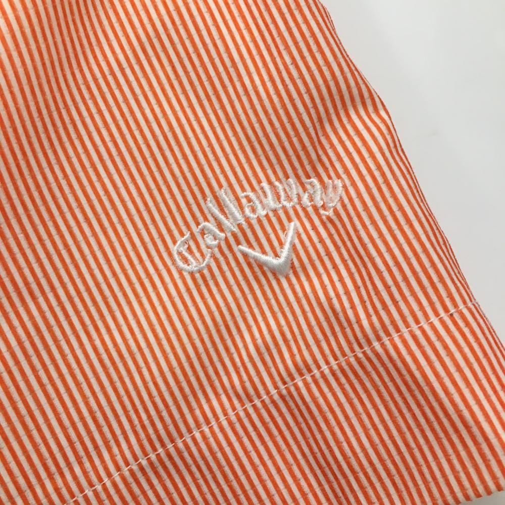 【超美品】キャロウェイ ショートパンツ オレンジ×白 ストライプ ロゴ刺しゅう 裏地付き レディース L ゴルフウェア Callaway