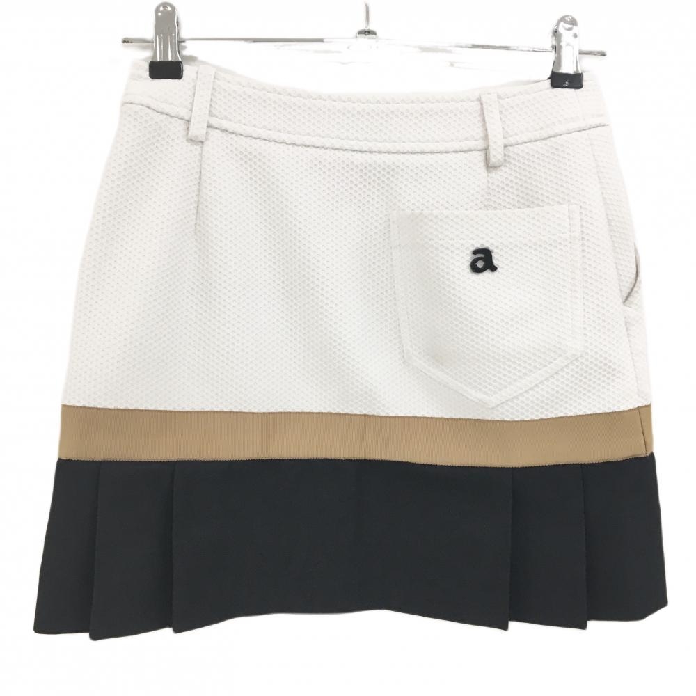 アルチビオ スカート 白×黒×ブラウン 凹凸生地 裾プリーツ レディース 36(S) ゴルフウェア archivio
