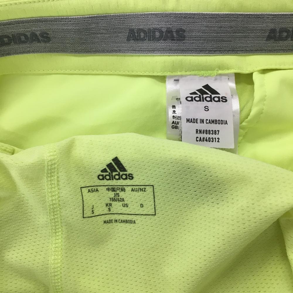アディダス ストレッチスカート イエロー 地模様 サイドシルバー3ライン インナーパンツ付 レディース S ゴルフウェア adidas