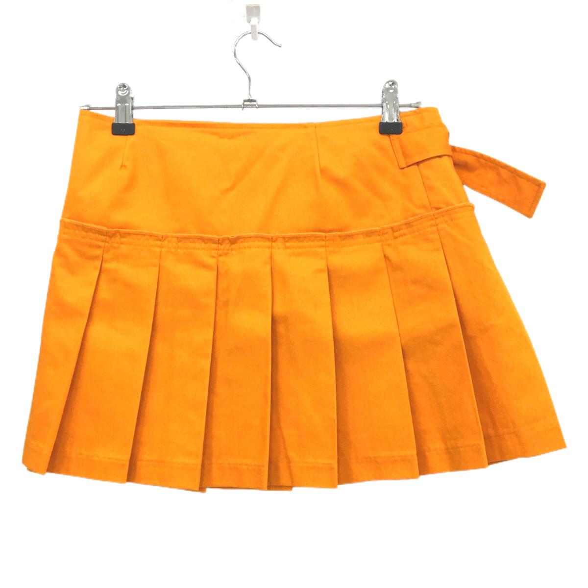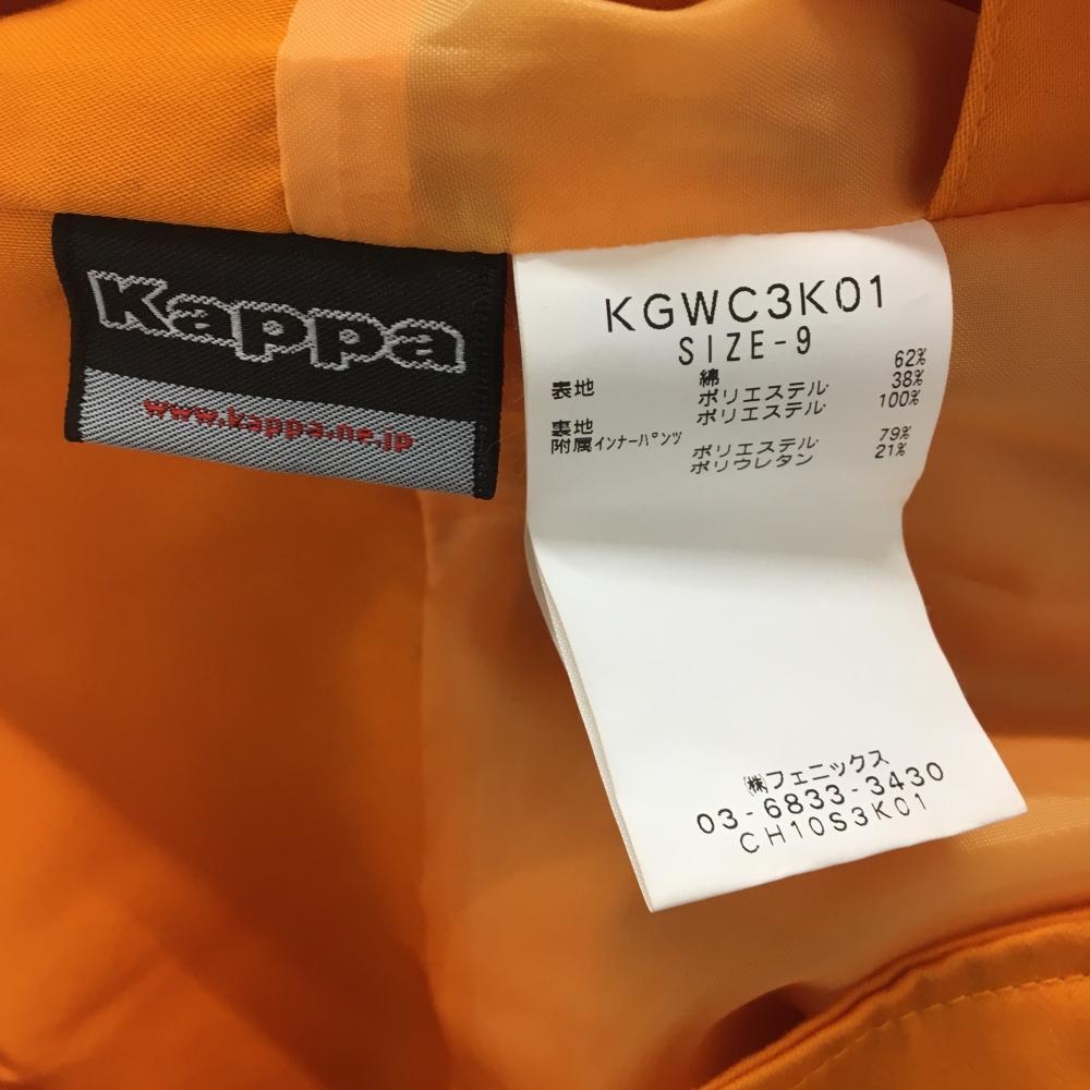 【超美品】カッパ ラッププリーツスカート オレンジ ロゴイエロー レディース 9 ゴルフウェア Kappa