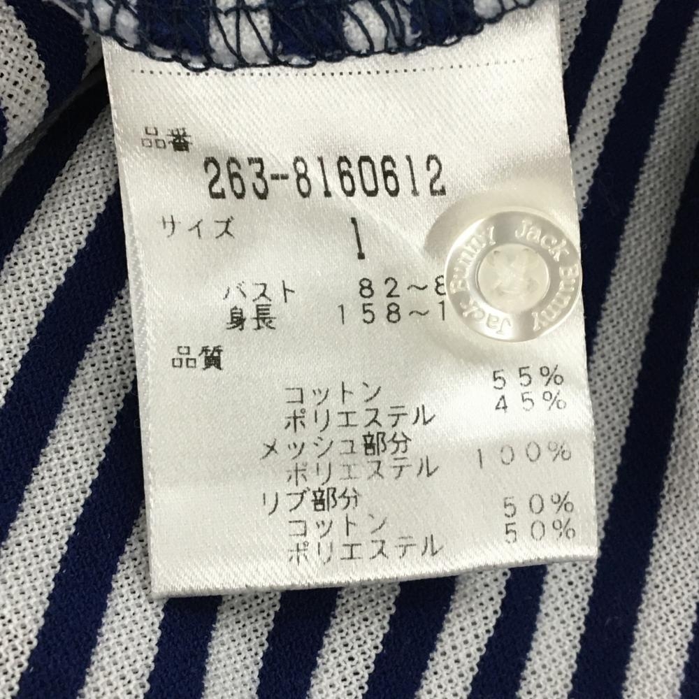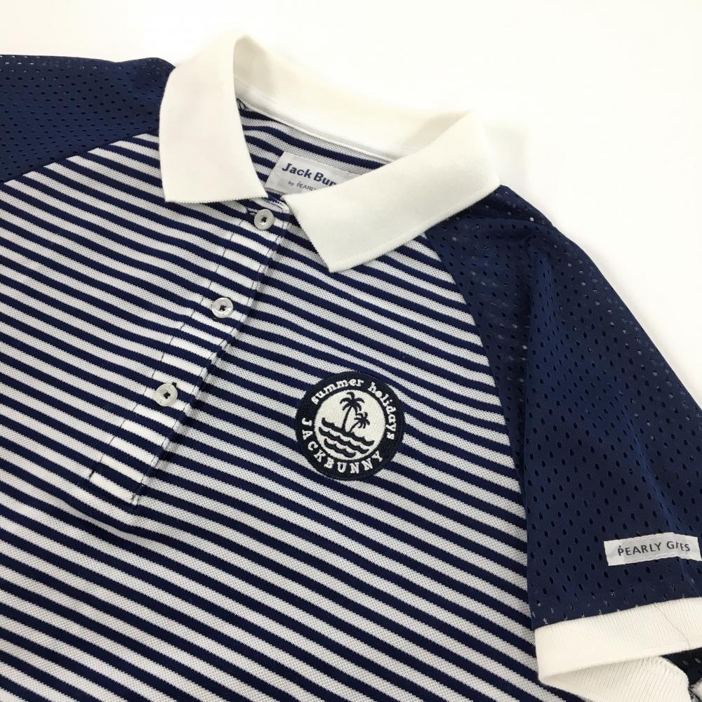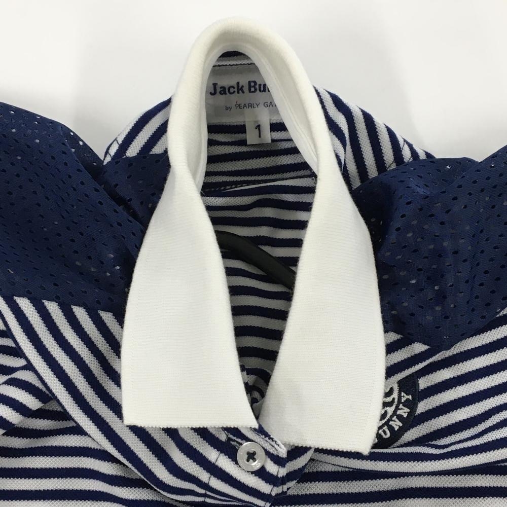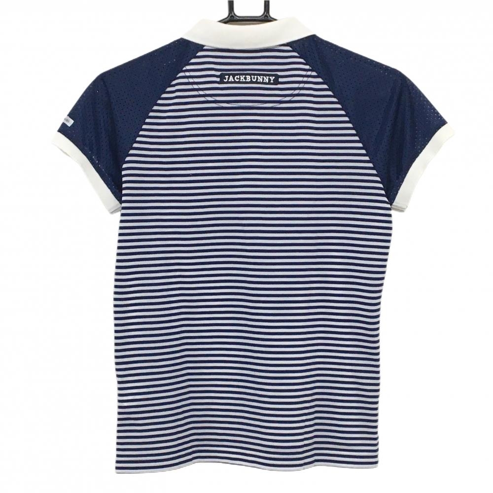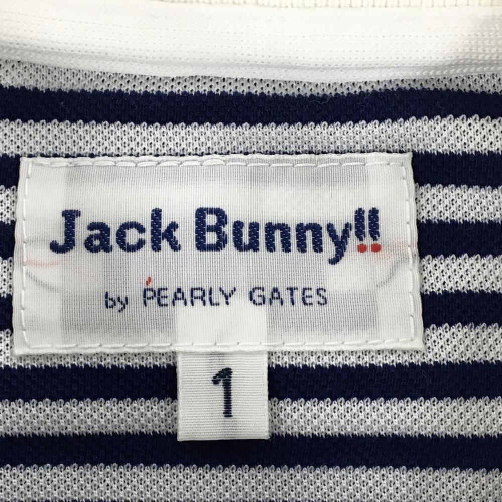 【美品】ジャックバニー 半袖ポロシャツ 白×ネイビー ボーダー 袖メッシュ レディース 1(M) ゴルフウェア Jack Bunny