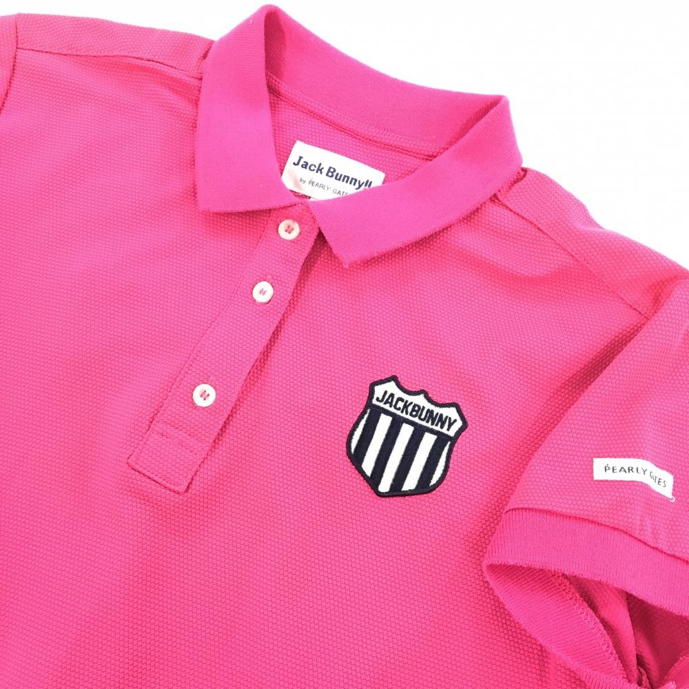 【美品】ジャックバニー 半袖ポロシャツ ピンク 胸ロゴワッペン レディース 0(S) ゴルフウェア Jack Bunny