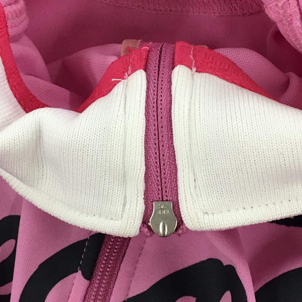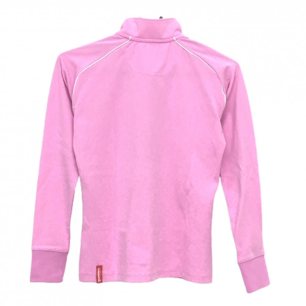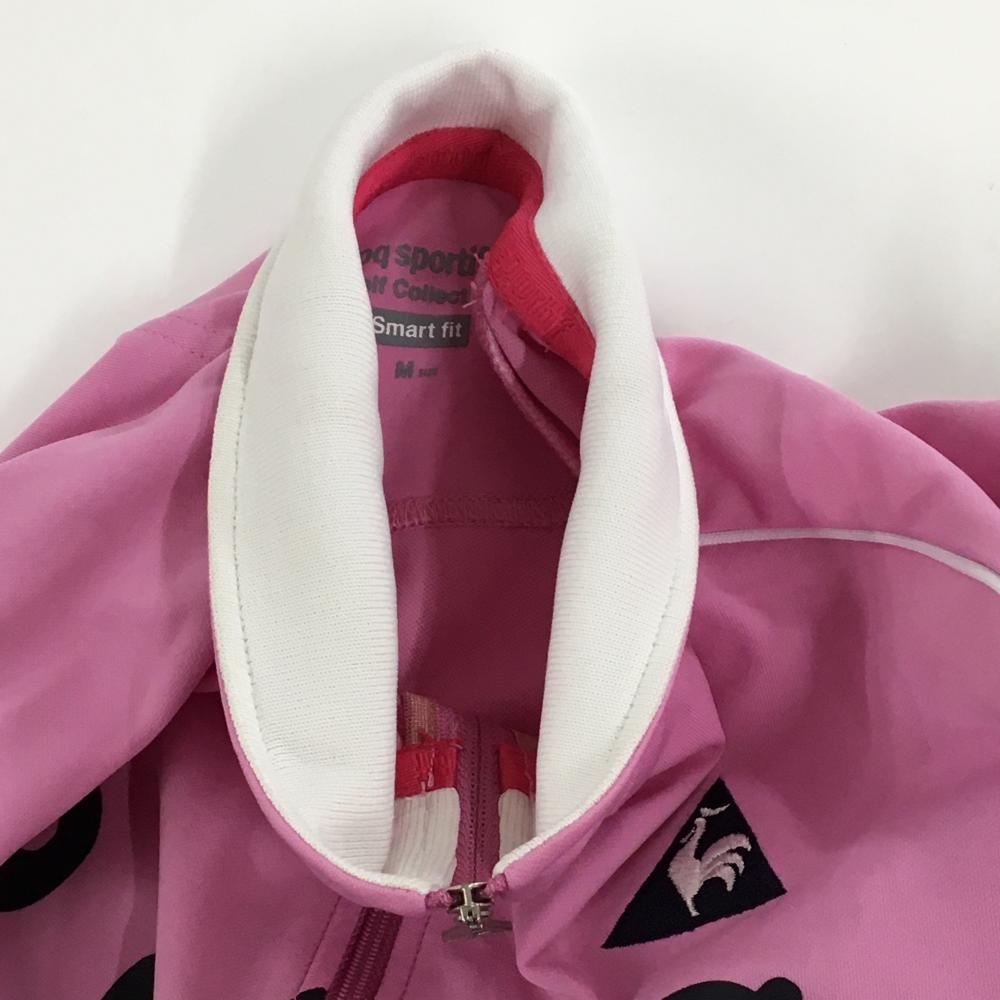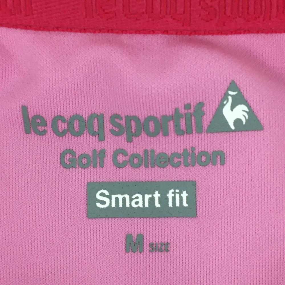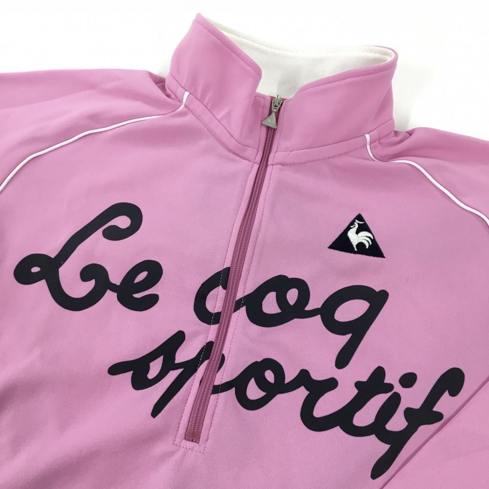 【美品】ルコック 長袖ハイネックシャツ ピンク×黒 フロントプリント ハーフジップ レディース M ゴルフウェア le coq sportif