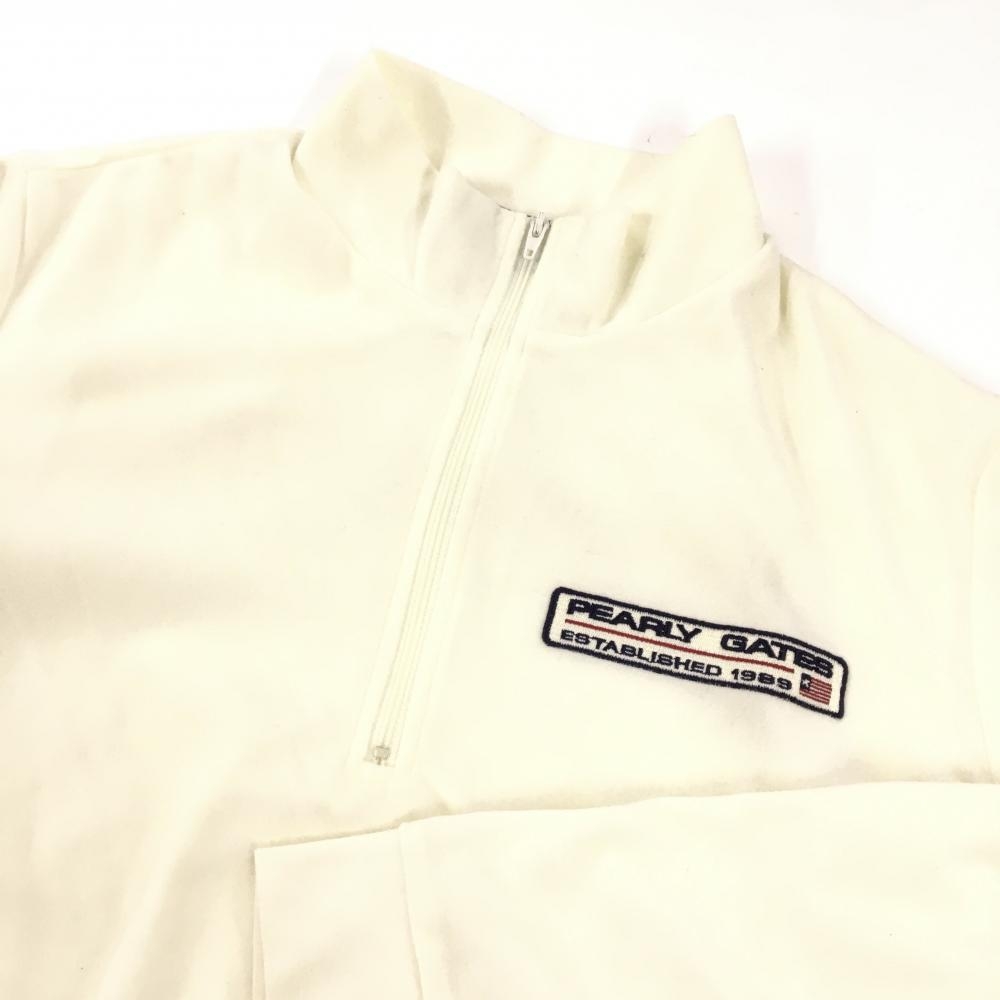 パーリーゲイツ 長袖ハイネックシャツ 白 表起毛 ロゴネイビー ハーフジップ レディース 1(M) ゴルフウェア PEARLY GATES