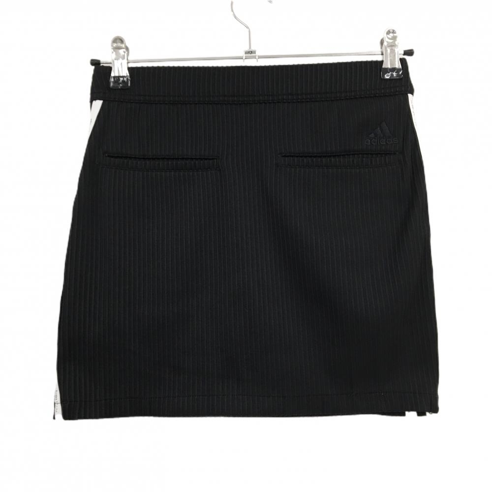 【超美品】アディダス ストレッチスカート 黒×白 ストライプ織生地 ウエストゴム サイド3ライン レディース S ゴルフウェア adidas