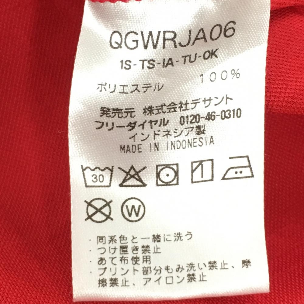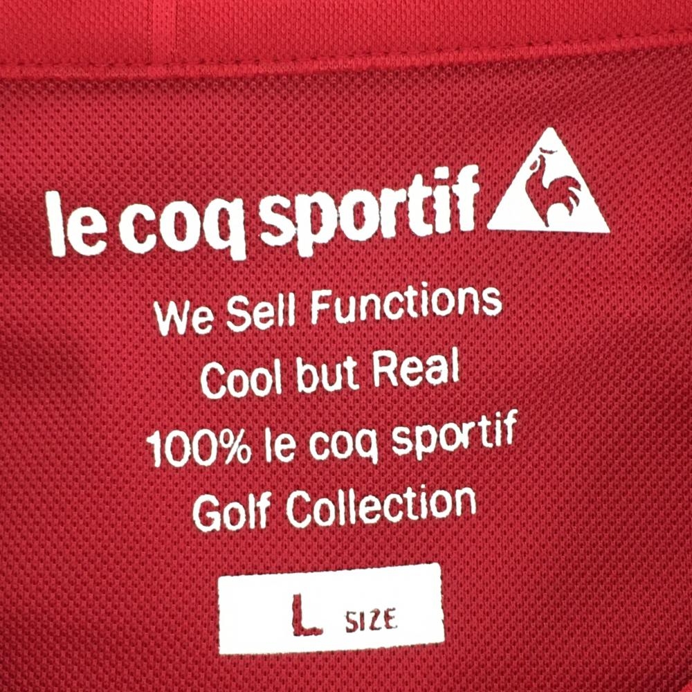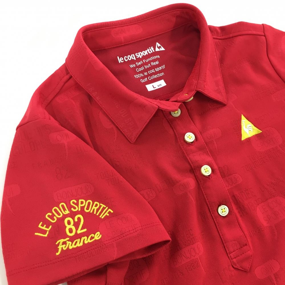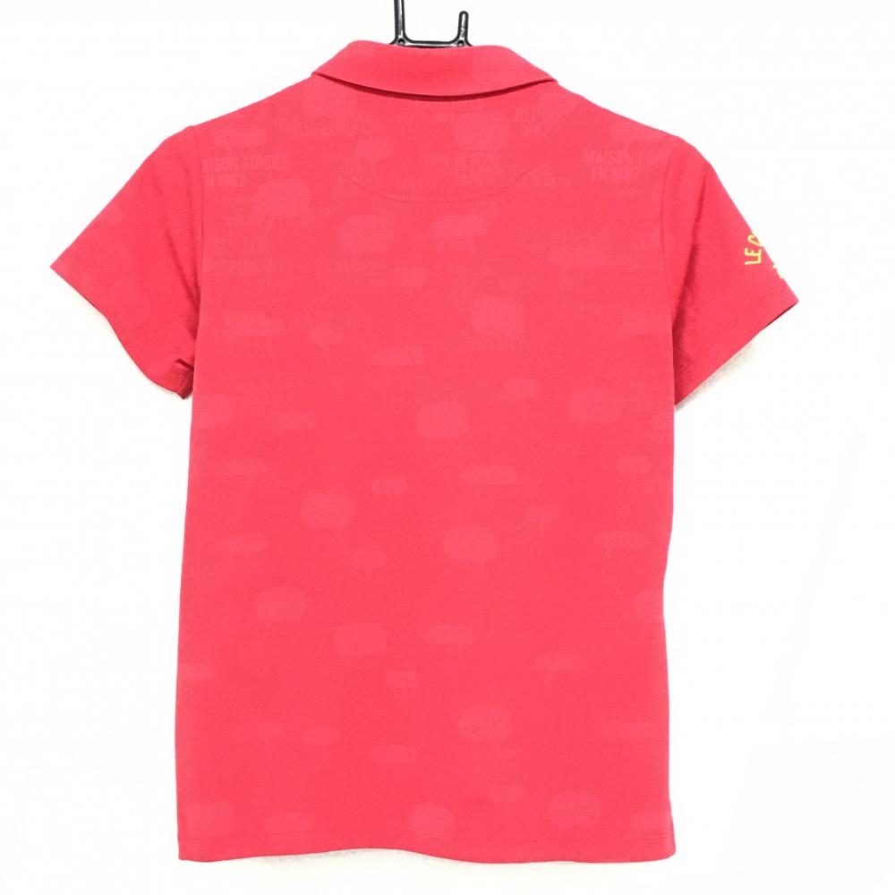【超美品】ルコックゴルフ 半袖ポロシャツ レッド 英字地模様 ロゴイエロー レディース L ゴルフウェア le coq sportif
