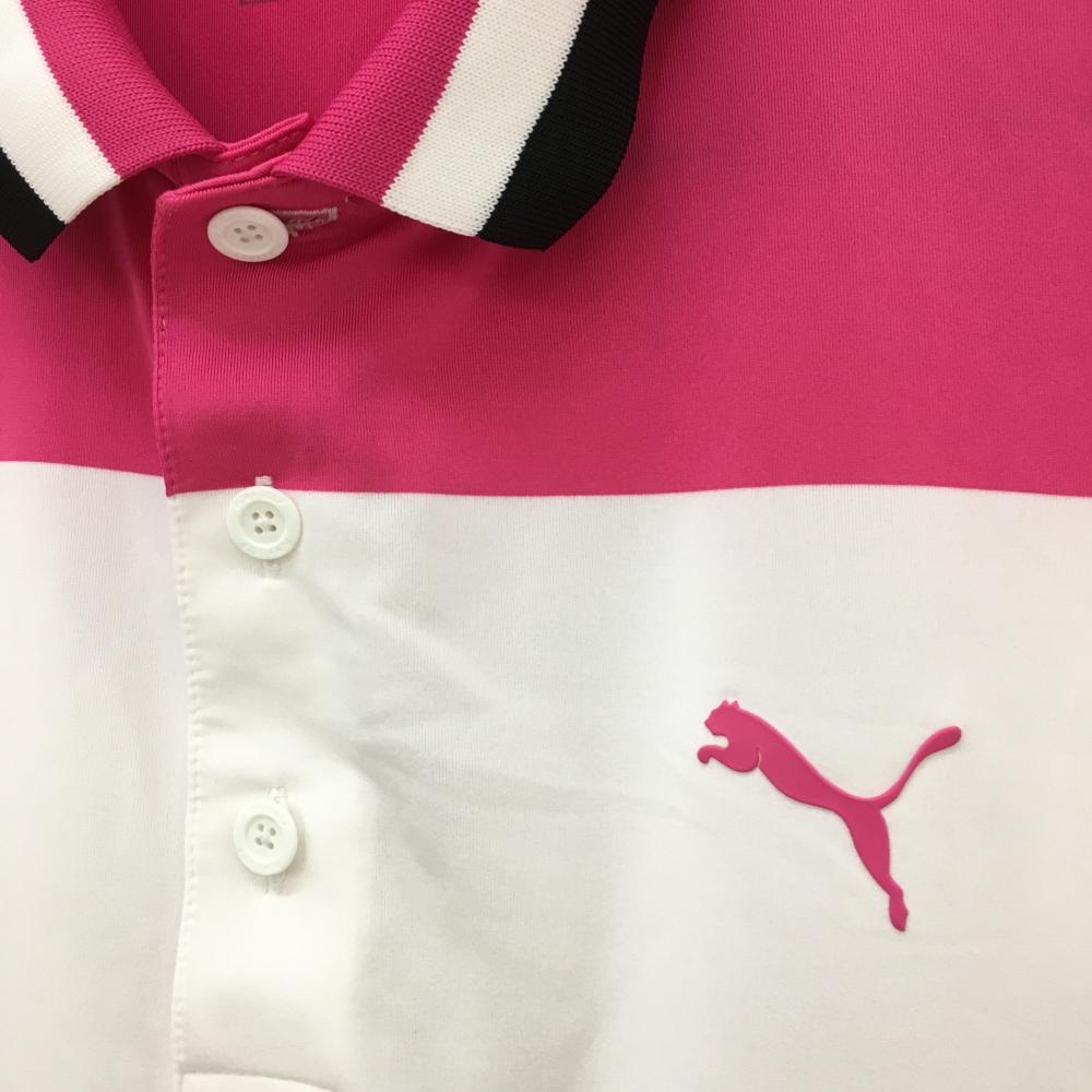【美品】プーマ 半袖ポロシャツ ピンク×白×黒 バイカラー メンズ M ゴルフウェア PUMA