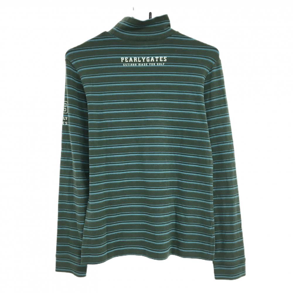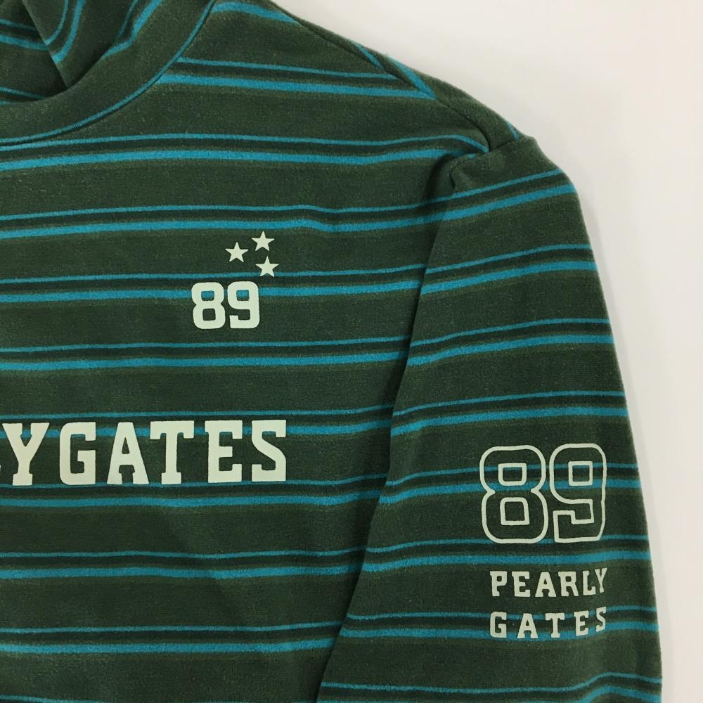 【美品】パーリーゲイツ 長袖ハイネックシャツ グレー×ライトブルー ボーダー レディース 2(L) ゴルフウェア PEARLY GATES