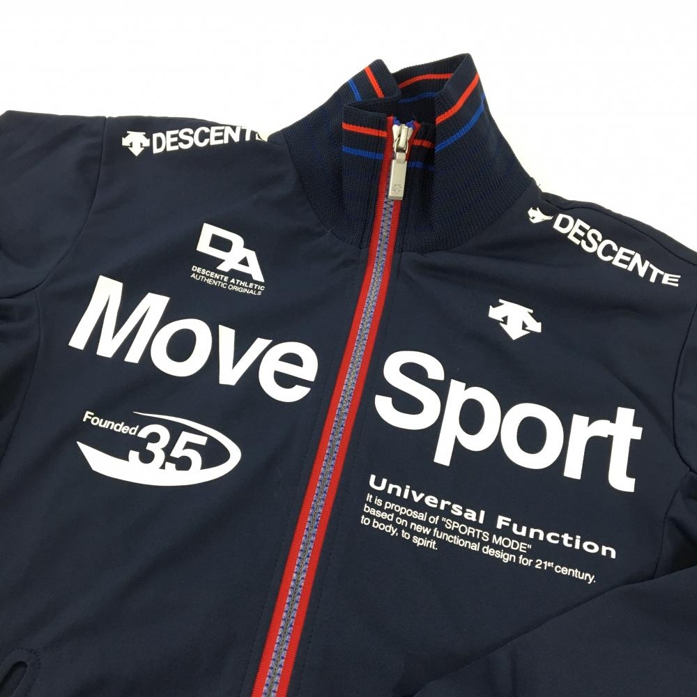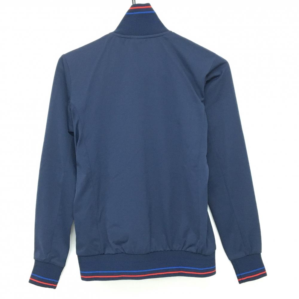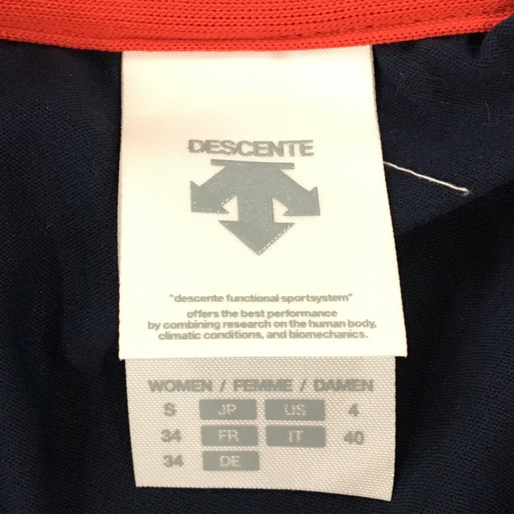 【超美品】デサント ジャケットブルゾン ネイビー×白 フロントプリント ネック・袖口ライン レディース S ゴルフウェア DESCENTE