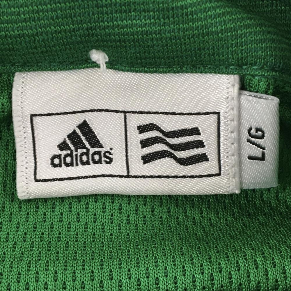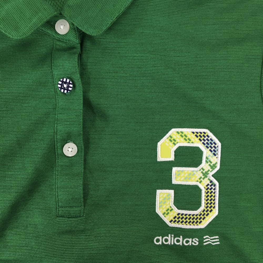 【超美品】アディダス 半袖ポロシャツ グリーン ワッペン総柄 レディース L/G ゴルフウェア adidas