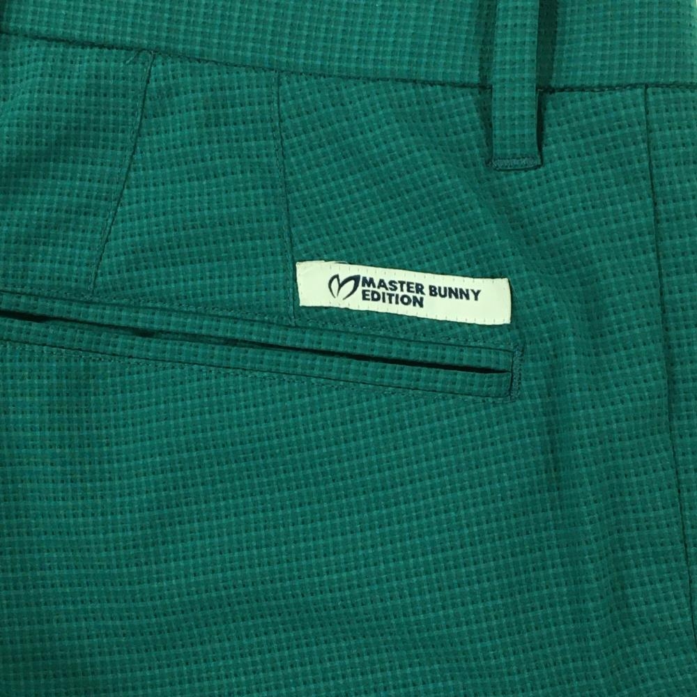 【超美品】マスターバニー パンツ グリーン チェック総柄地模様 メンズ 3(S) ゴルフウェア MASTER BUNNY EDITION