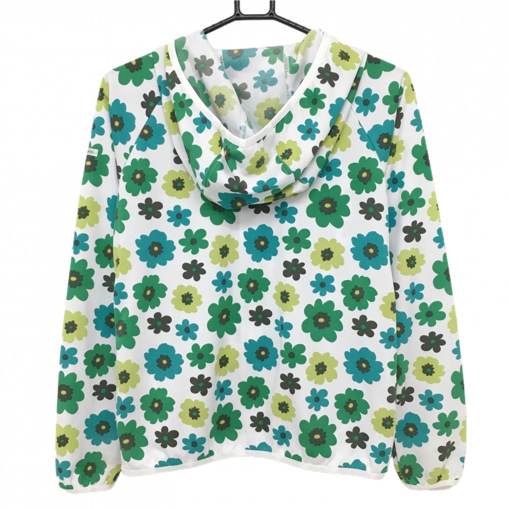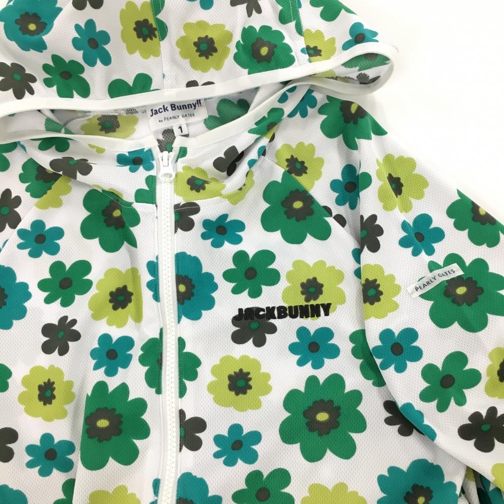 【美品】ジャックバニー ジップパーカー 白×グリーン 花柄 レディース 1(M) ゴルフウェア Jack Bunny