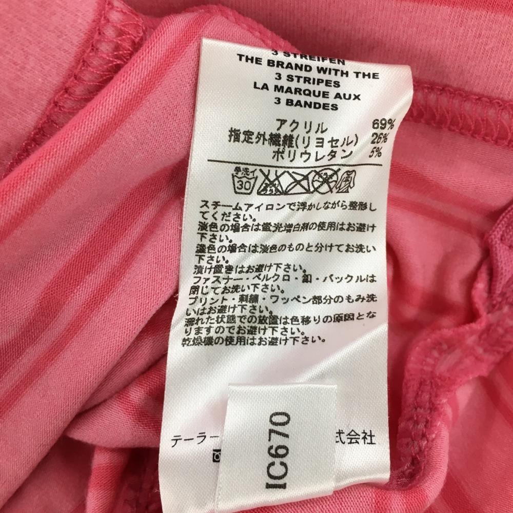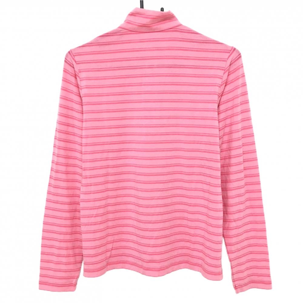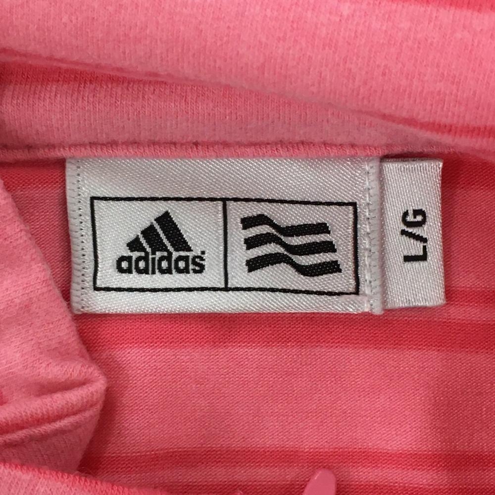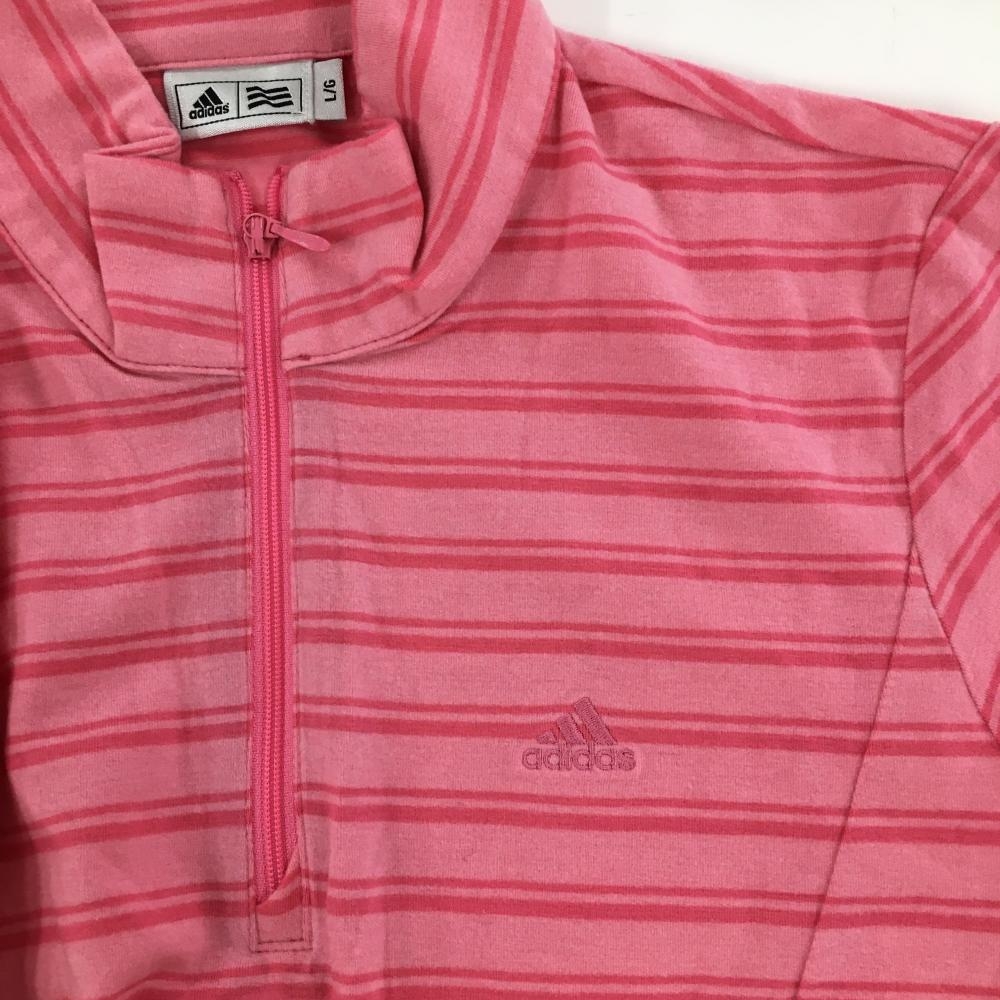 【超美品】アディダス 長袖ハイネックシャツ ピンク ボーダー 表微起毛 ハーフジップ アクリル混 レディース L/G ゴルフウェア adidas