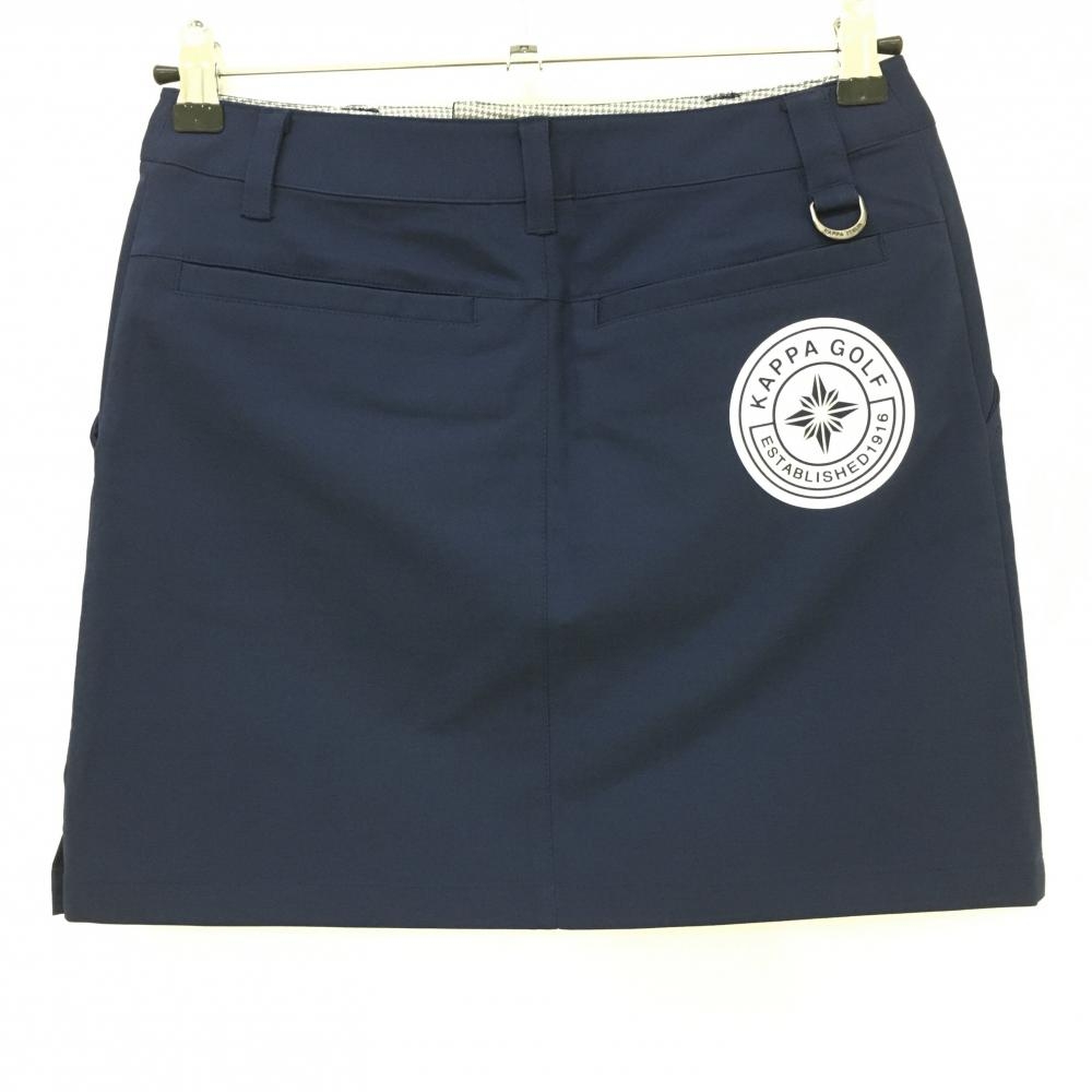 【超美品】カッパ スカート ネイビー ロゴ白 バックプリント レディース S ゴルフウェア Kappa