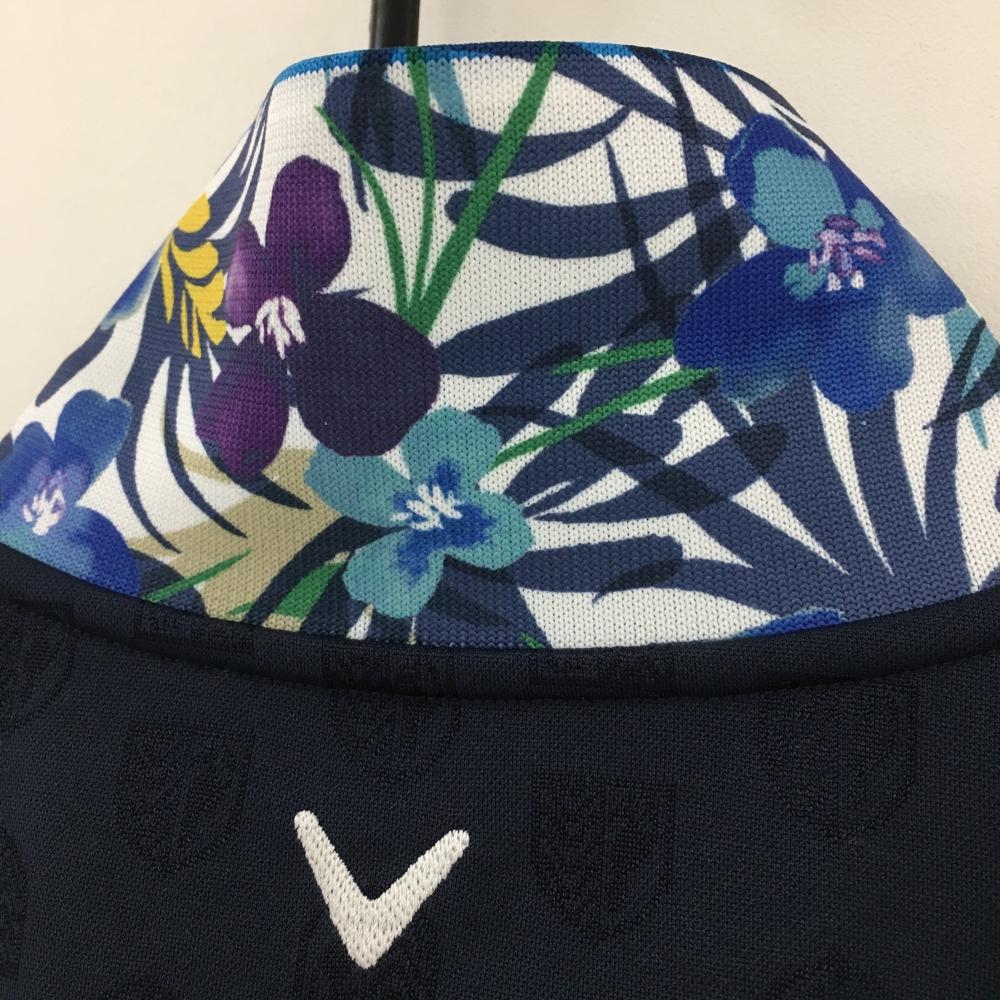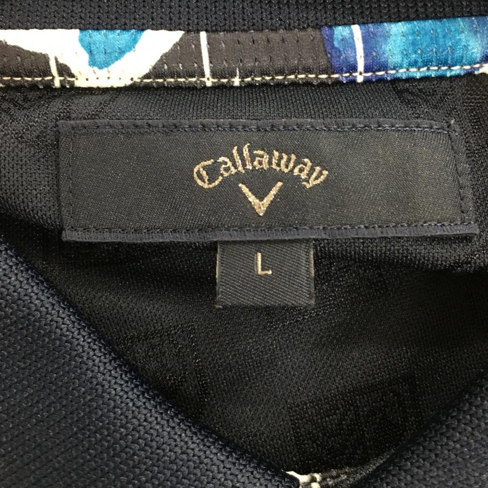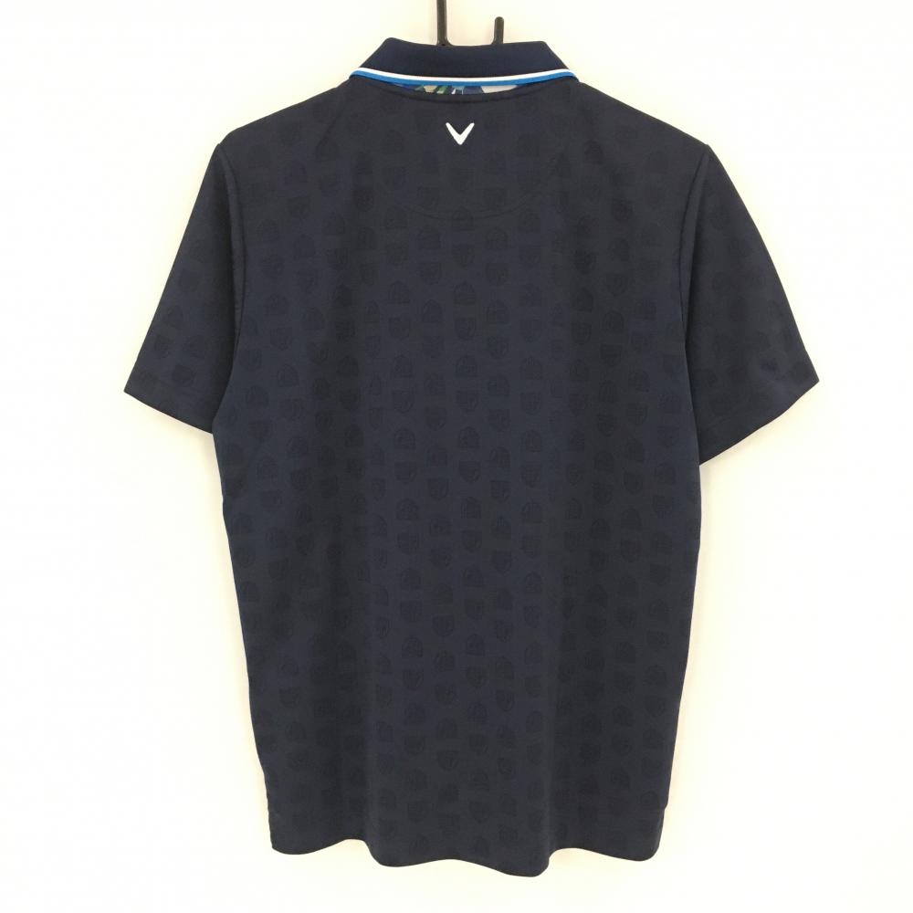 【超美品】キャロウェイ 半袖ポロシャツ ネイビー 地模様 ロゴ刺しゅう メンズ L ゴルフウェア Callaway