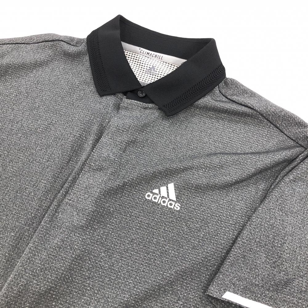 【超美品】アディダス 半袖ポロシャツ 杢グレー ロゴシルバー 襟ニット CLIMACHILL メンズ L ゴルフウェア adidas