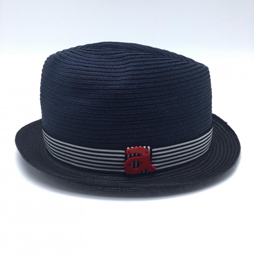 【超美品】アルチビオ 中折れハット ネイビー×黒 リボンボーダー 内側ゴム レディース ゴルフウェア archivio
