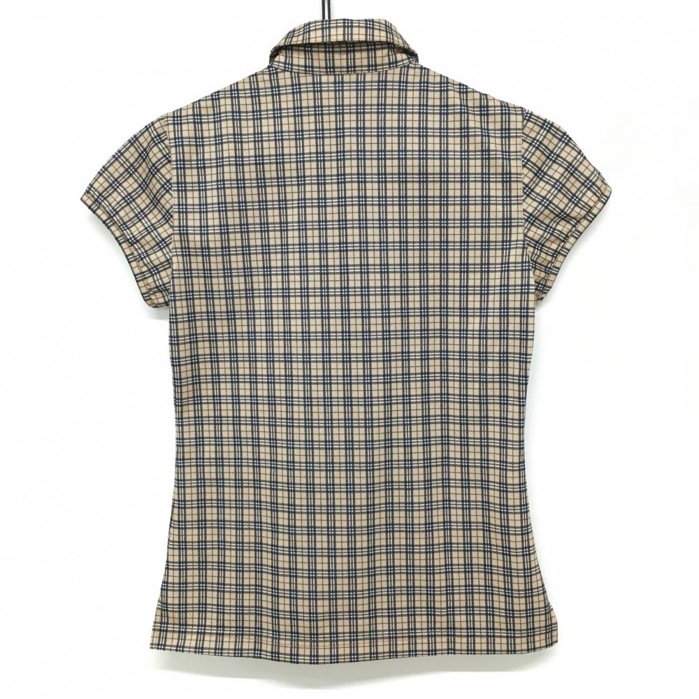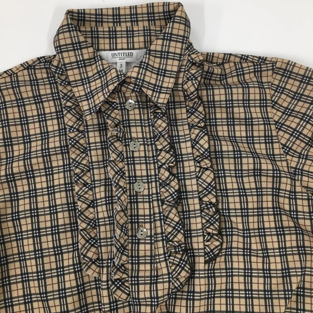 【美品】アンタイトルスポー 半袖ポロシャツ ベージュ×黒 チェック 前フリル レディース 2(M) ゴルフウェア UNTITLEDSPORT