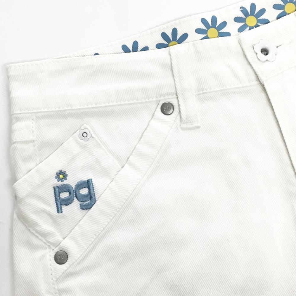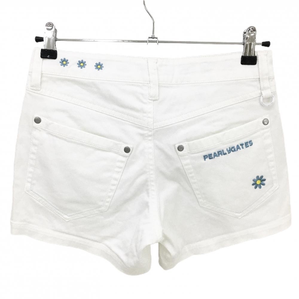 【美品】パーリーゲイツ ショートパンツ 白×ライトブルー 花刺しゅう レディース 00(XS) ゴルフウェア PEARLY GATES