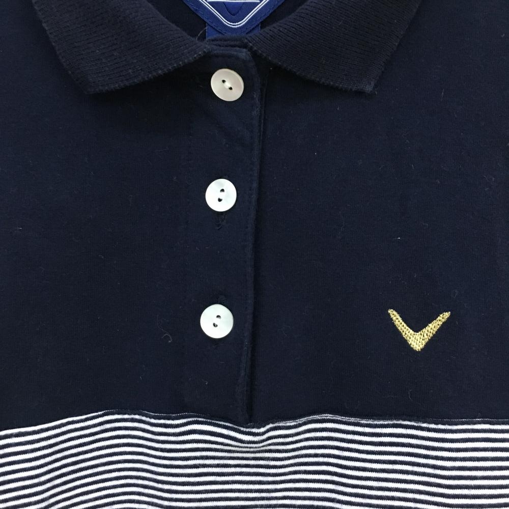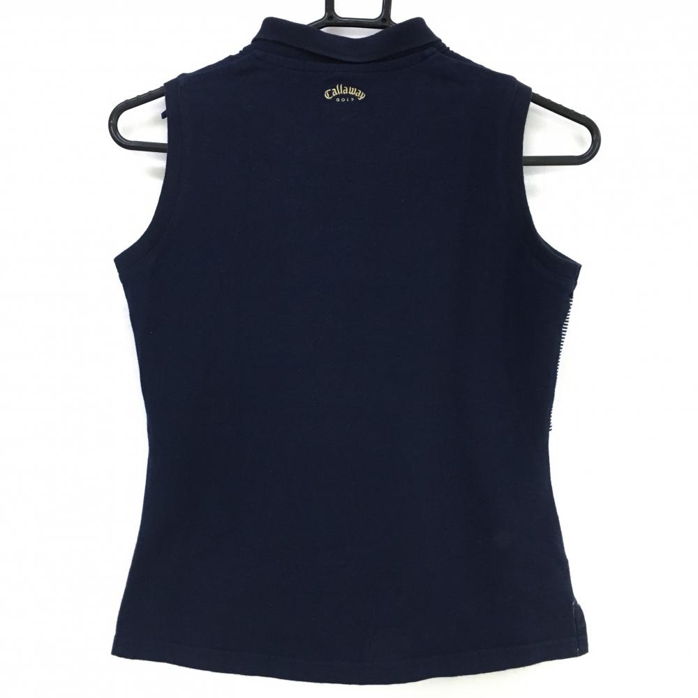キャロウェイ ノースリーブポロシャツ ネイビー×白 一部ボーダー ロゴ刺しゅう レディース S ゴルフウェア Callaway