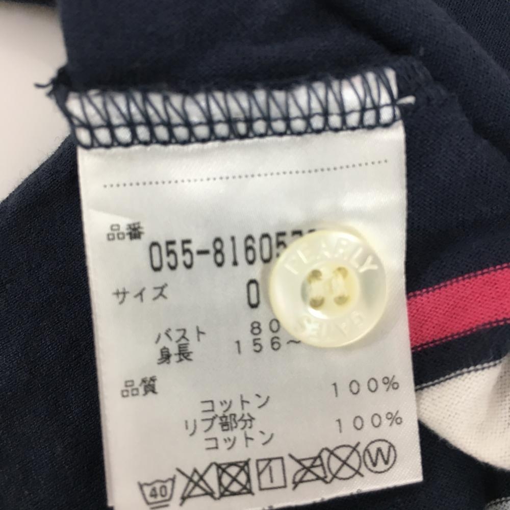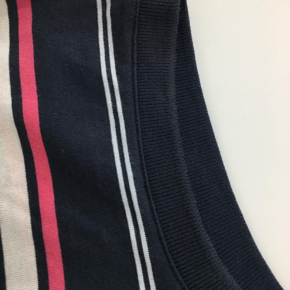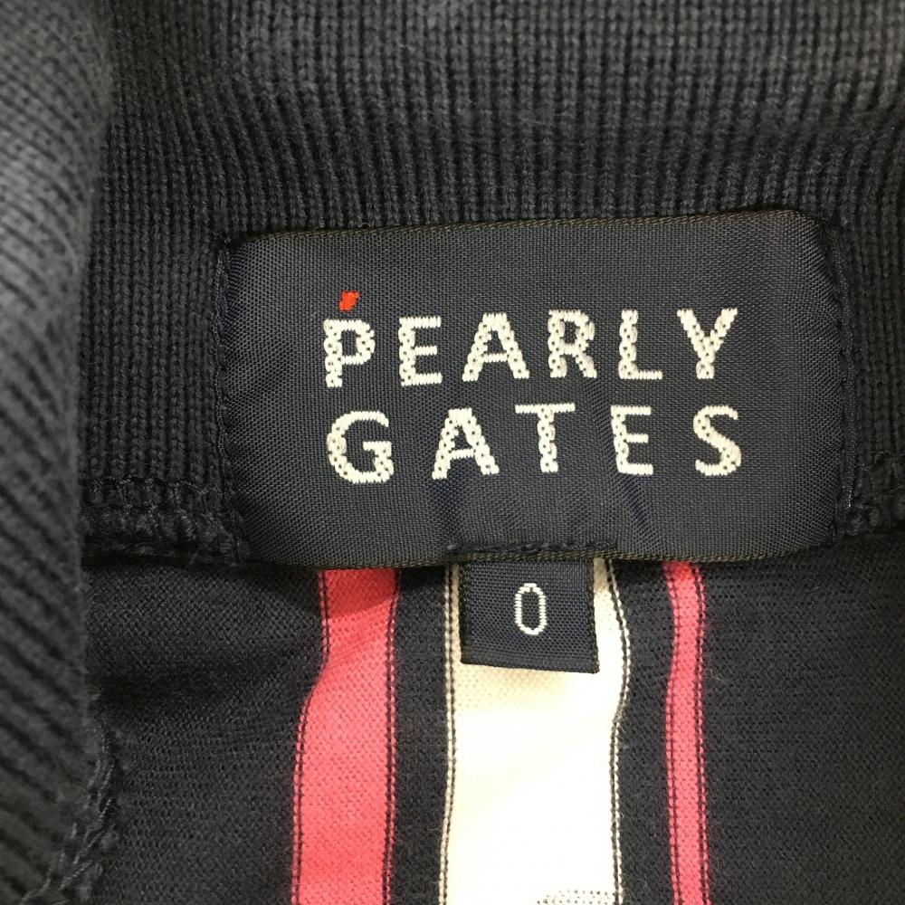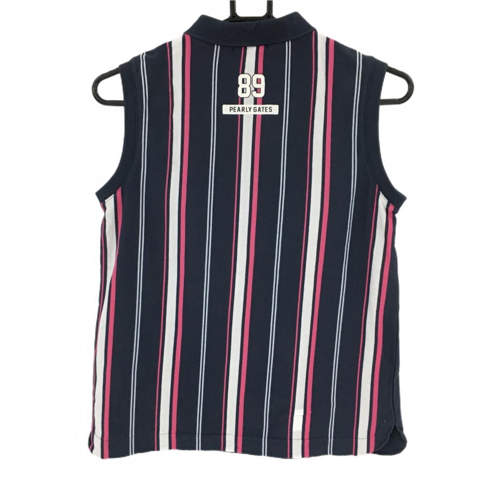 パーリーゲイツ ノースリーブポロシャツ ネイビー×白×ピンク ストライプ ロゴワッペン レディース 0(S) ゴルフウェア PEARLY GATES