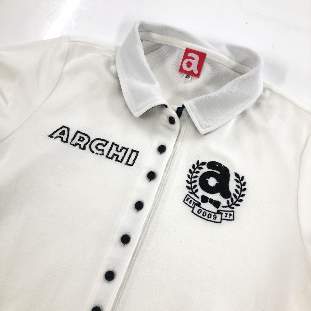 【超美品】アルチビオ 半袖ポロワンピース 白×黒 スカートボーダー スパンコールロゴ レディース 36(S) ゴルフウェア archivio