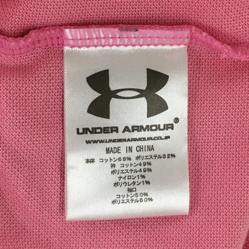 【超美品】アンダーアーマー 半袖ポロシャツ ピンク×ライトブルー 胸ロゴ刺しゅう レディース SM(S) ゴルフウェア UNDER ARMOUR
