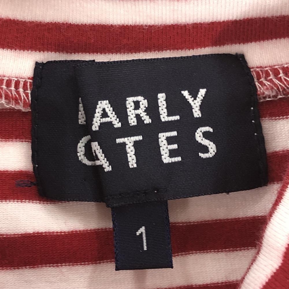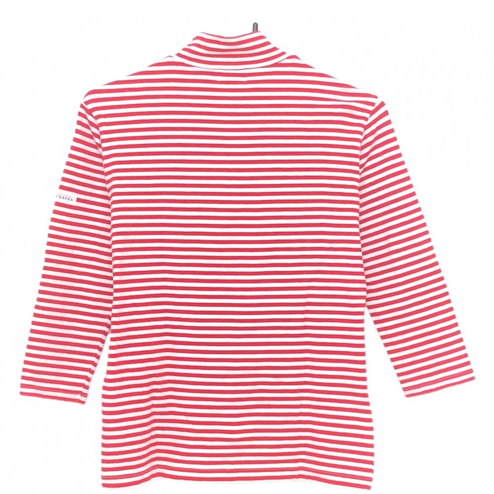 【美品】パーリーゲイツ 長袖ハイネックシャツ 白×レッド ボーダー 七分袖 レディース 1(M) ゴルフウェア PEARLY GATES