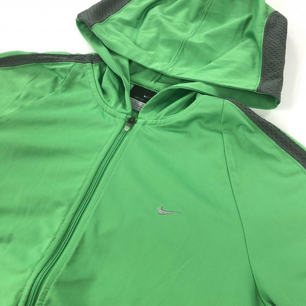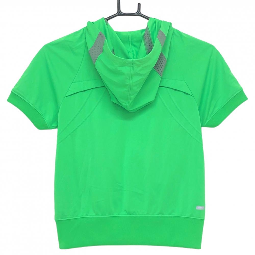 【超美品】ナイキ 半袖ジップパーカー グリーン 袖一部メッシュ ロゴ刺しゅう レディース S ゴルフウェア NIKE