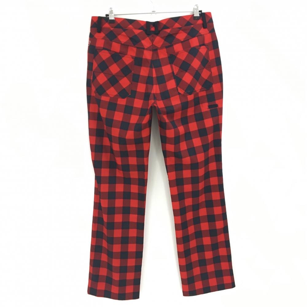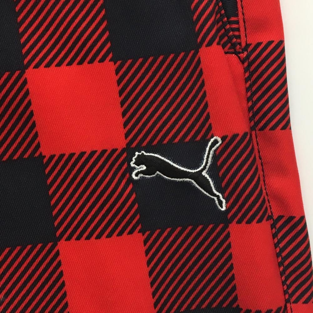 【美品】プーマ パンツ レッド×黒 チェック ロゴ刺しゅう ストレッチ メンズ 88 ゴルフウェア PUMA