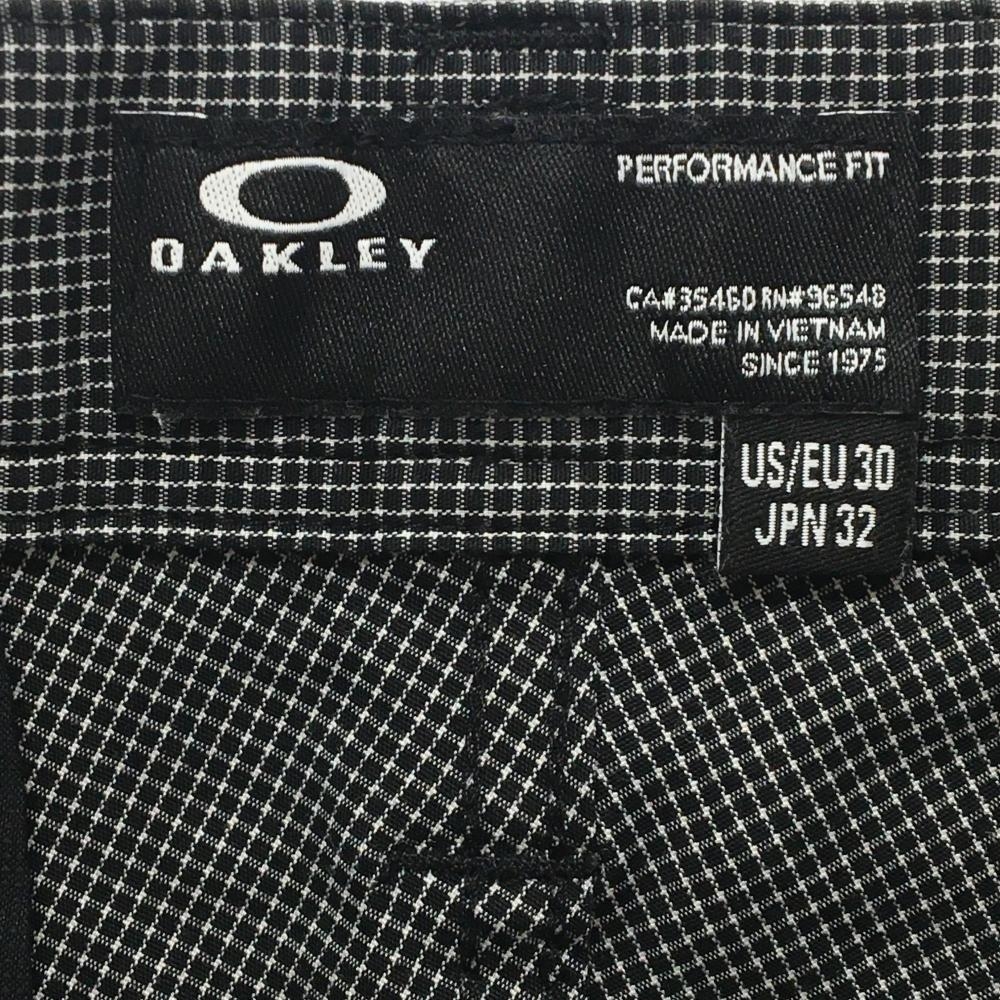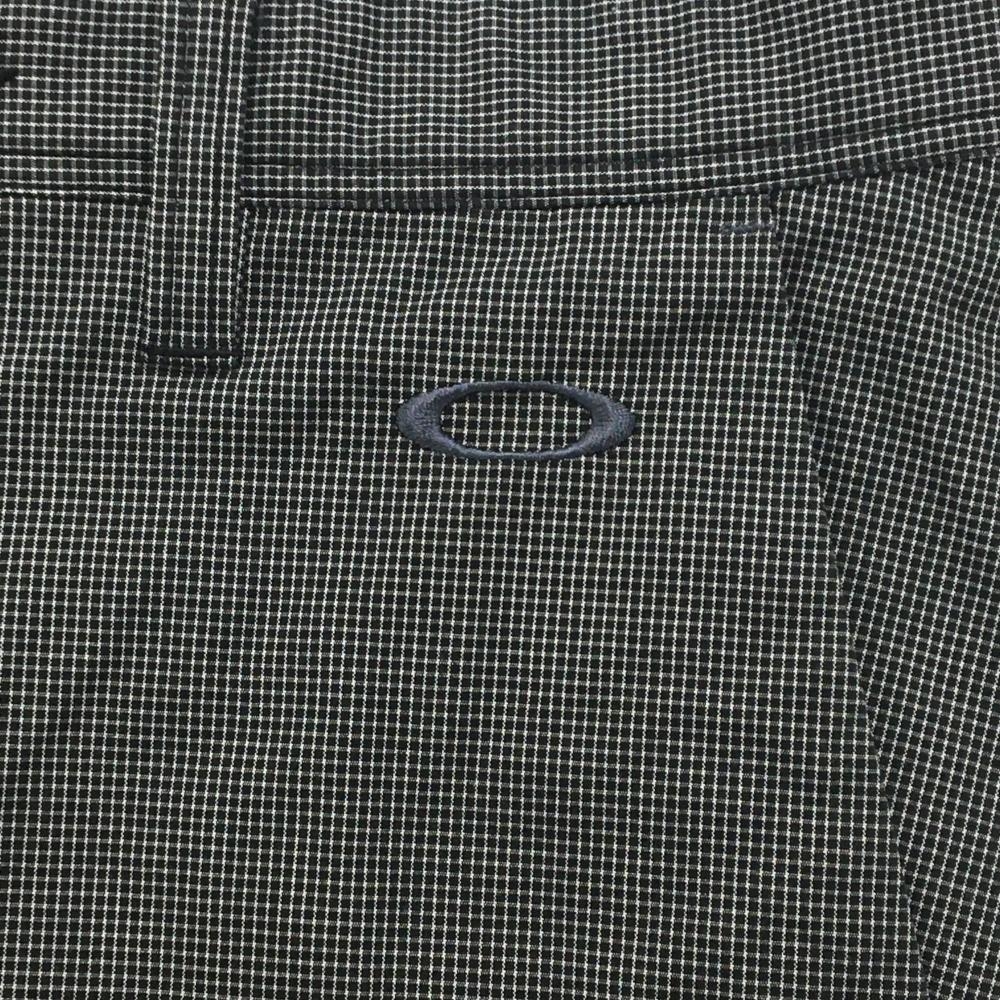 【美品】オークリー パンツ 黒×白 チェック柄 ティー装着可 ロゴグレー HYDROLIX メンズ 32 ゴルフウェア Oakley