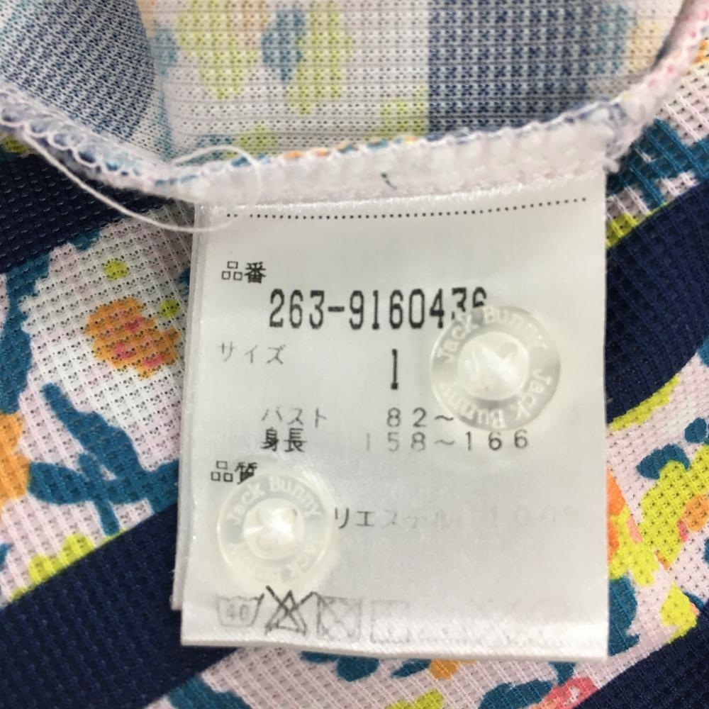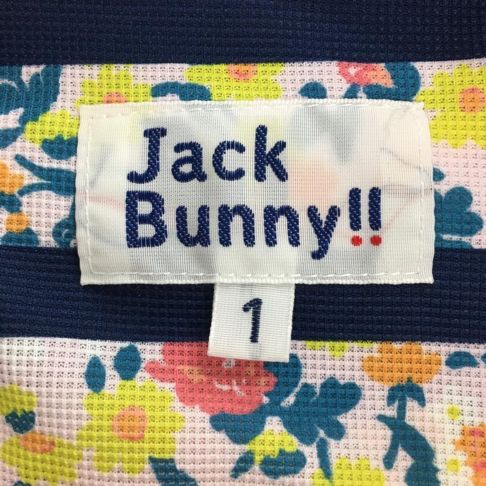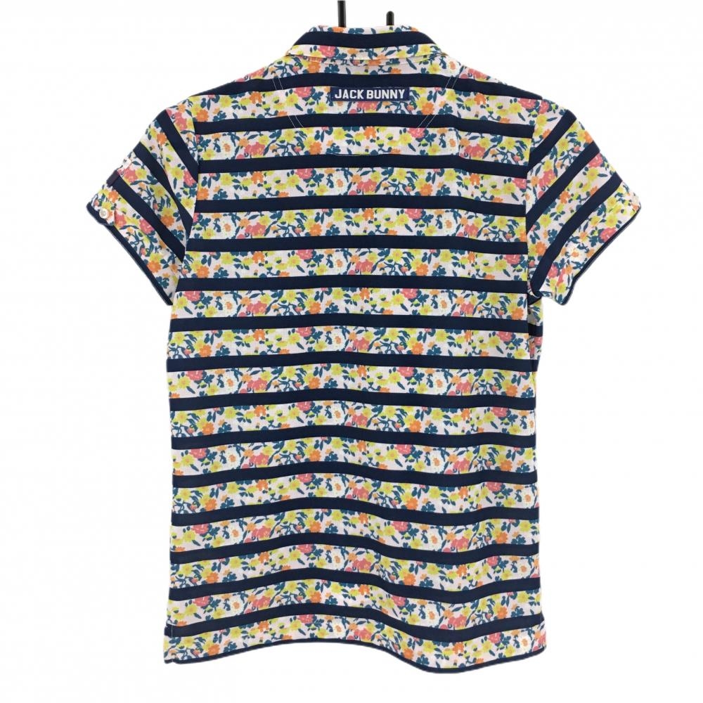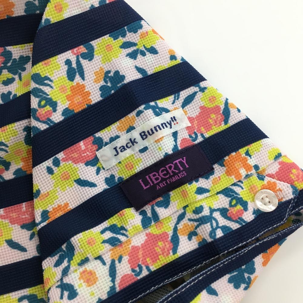 【超美品】ジャックバニー 半袖ポロシャツ ライトグリーン×ピンク×ネイビー 小花柄 ボーダー レディース 1(M) ゴルフウェア Jack Bunny