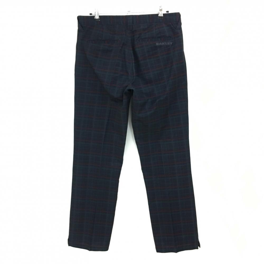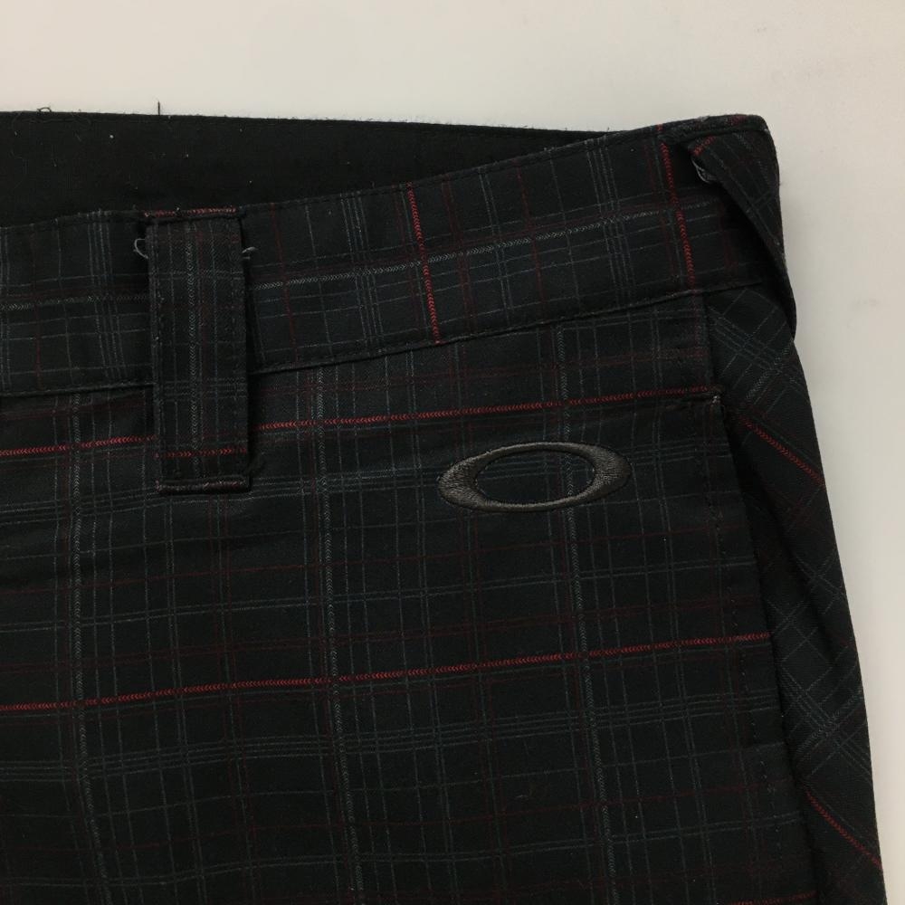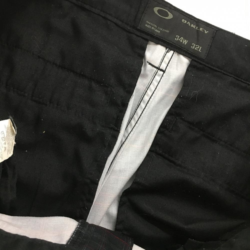 オークリー パンツ 黒×レッド チェック ロゴ刺しゅう メンズ 34W32L ゴルフウェア Oakley