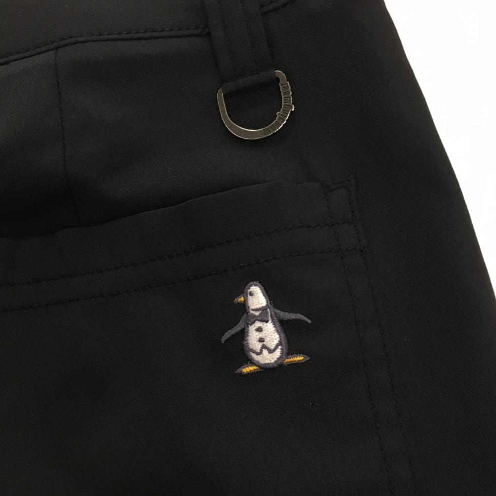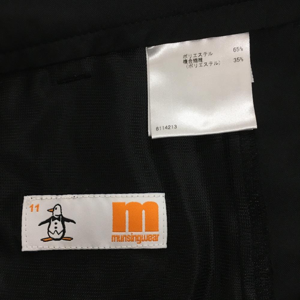 マンシングウェア キュロットスカート 黒×ライトグレー サイドロゴ ストレッチ 裾汚れ小、ヒップ毛羽立ち レディース ゴルフウェア Munsingwear