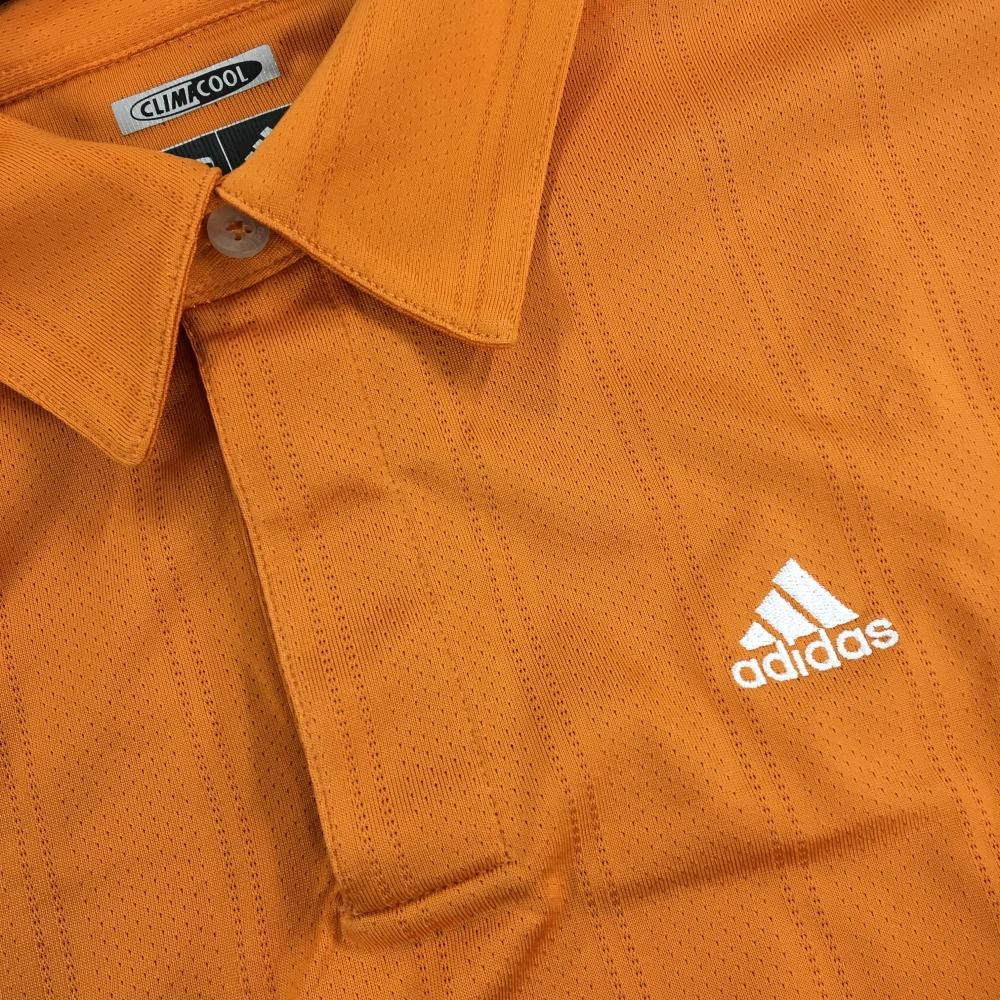 【美品】アディダス 半袖ポロシャツ オレンジ ストライプ メッシュ調生地 クリマクール メンズ L/G ゴルフウェア adidas