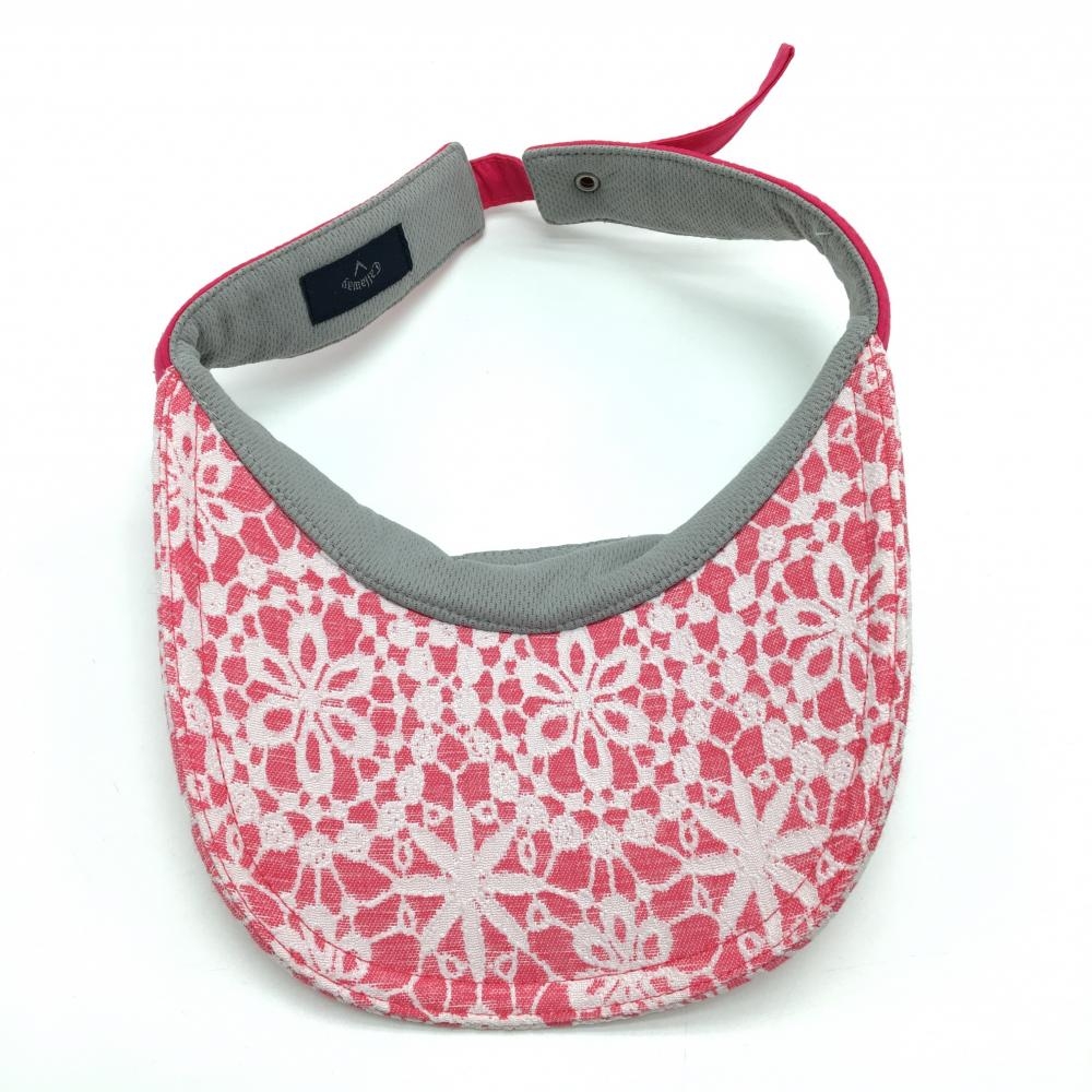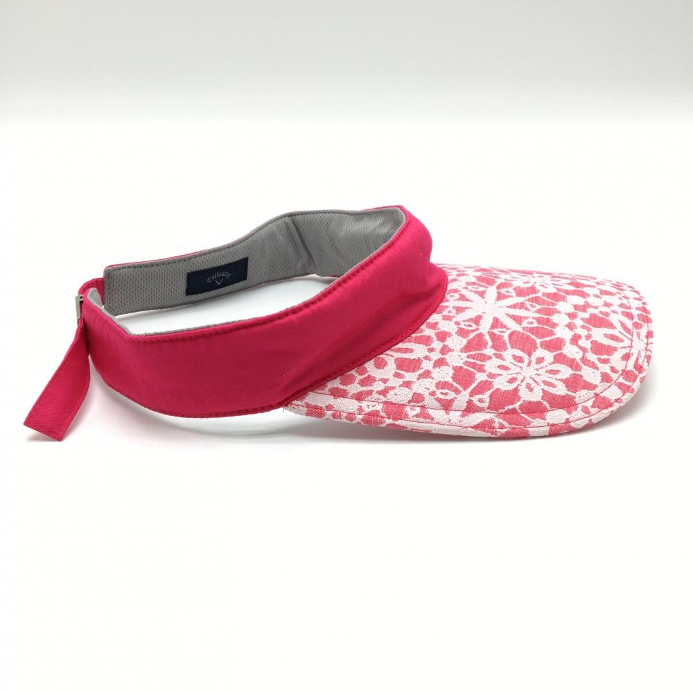 【超美品】キャロウェイ サンバイザー ピンク×白 つば柄 紙タグ付き FR ゴルフウェア Callaway