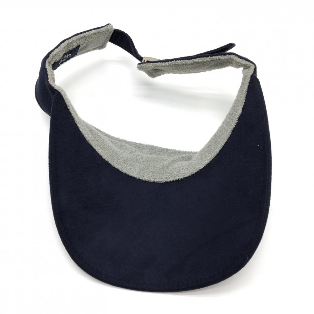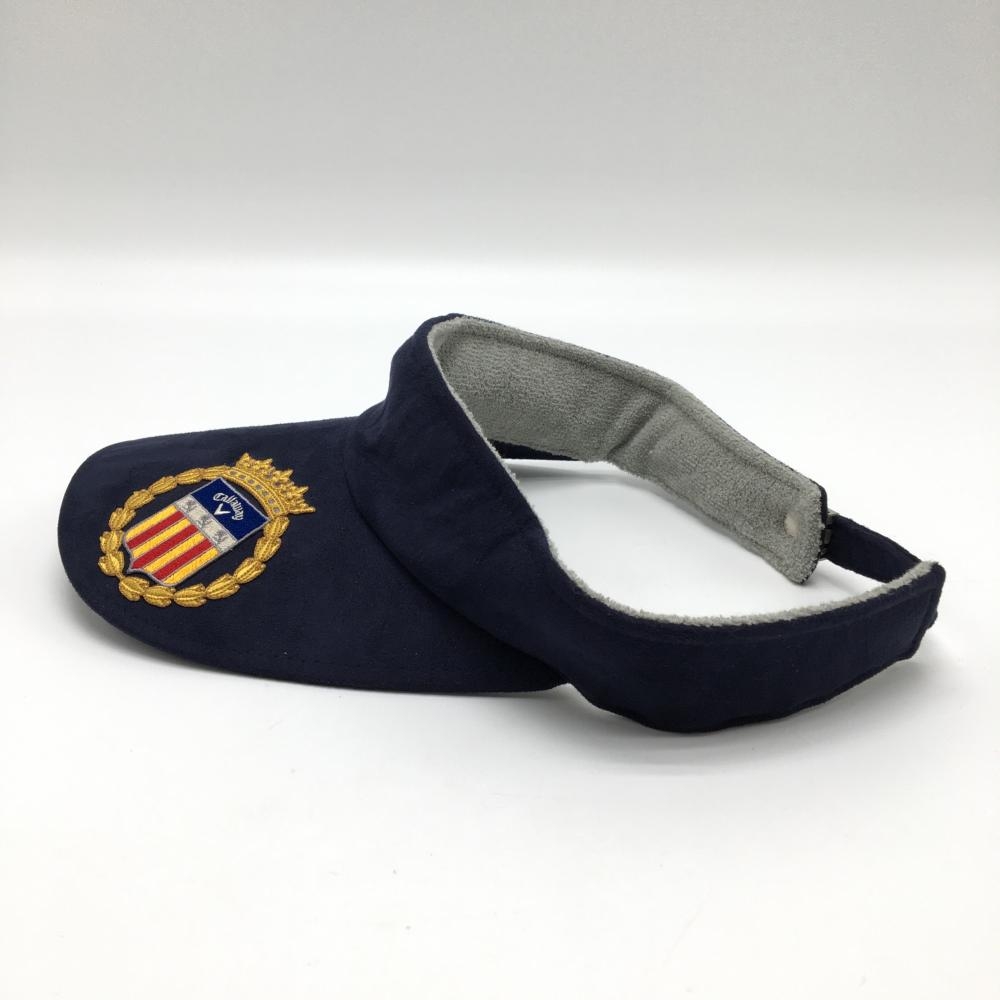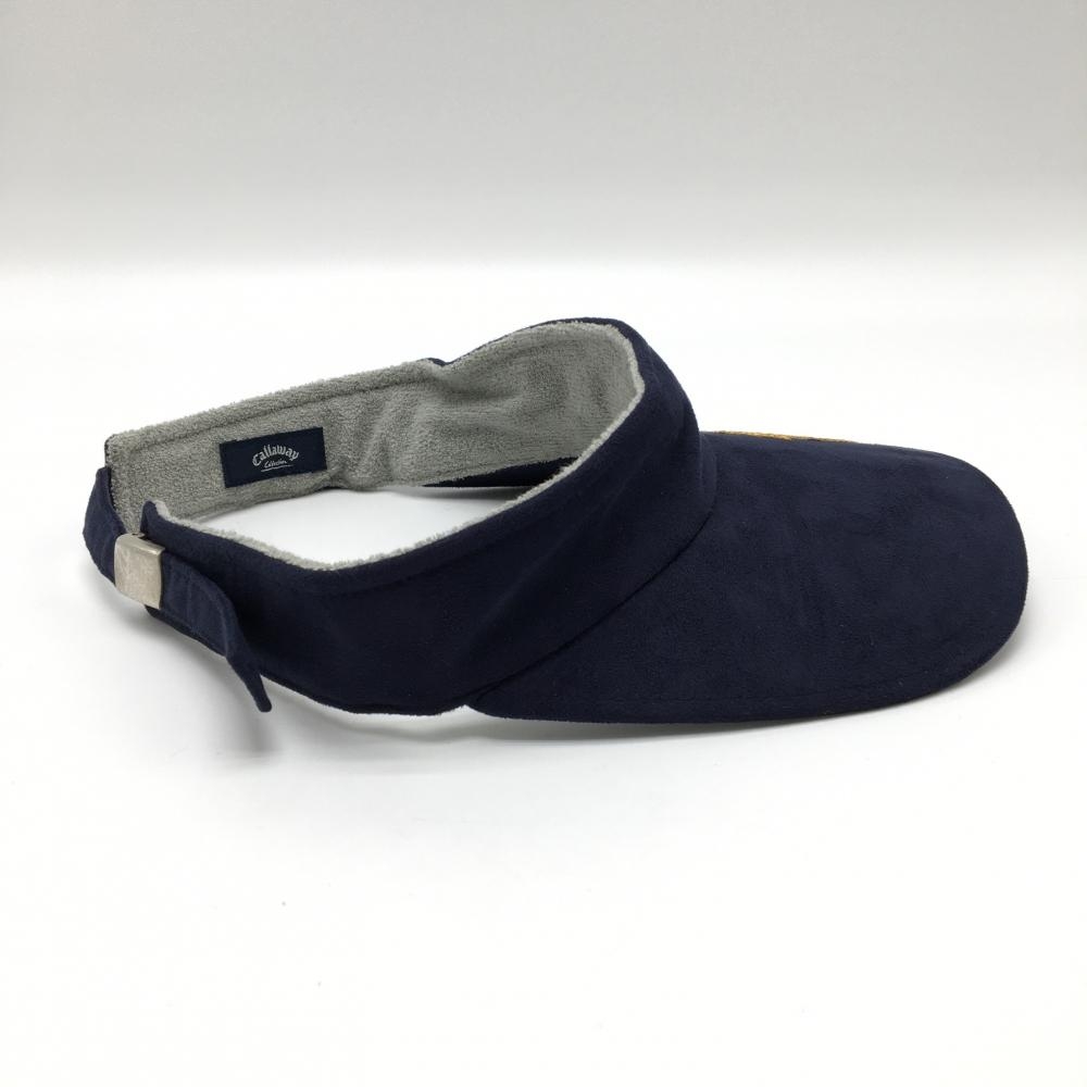 【美品】キャロウェイ サンバイザー ネイビー×イエロー スエード調 刺しゅう ゴルフウェア Callaway
