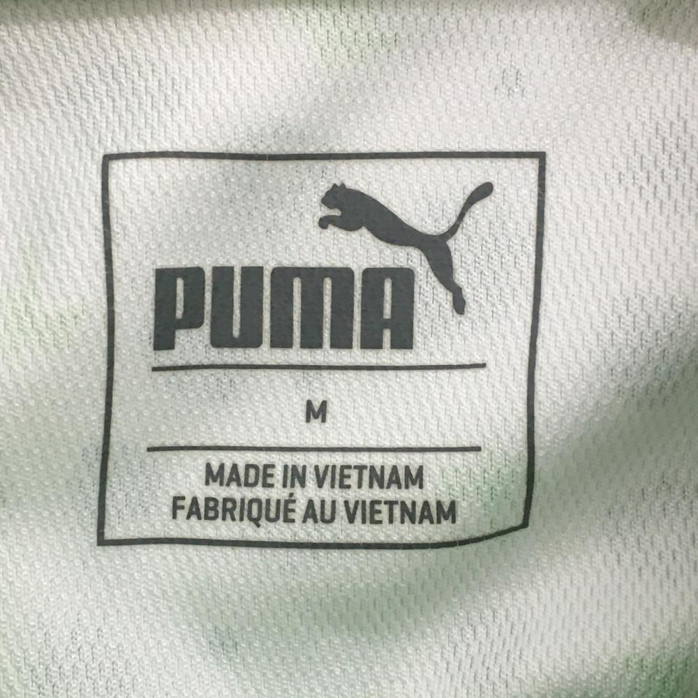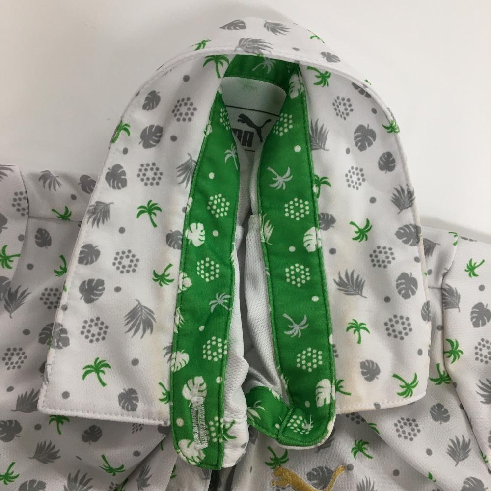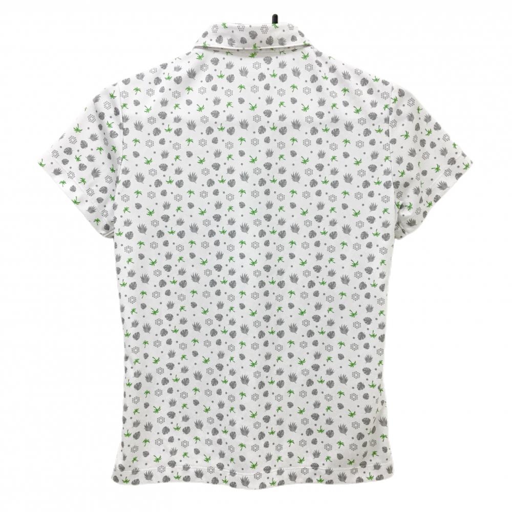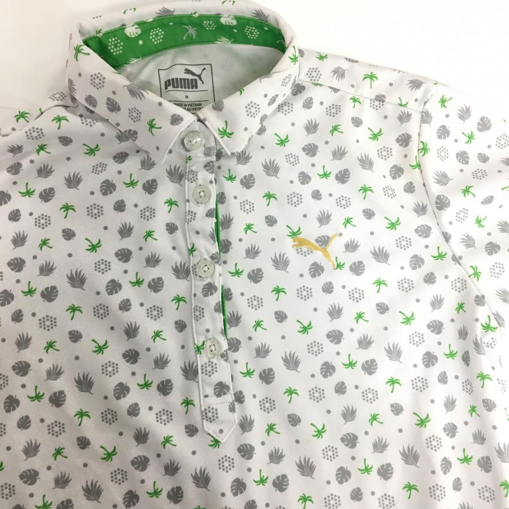 プーマ 半袖ポロシャツ 白×グレー×グリーン リーフ柄×ヤシの木柄 レディース M ゴルフウェア PUMA