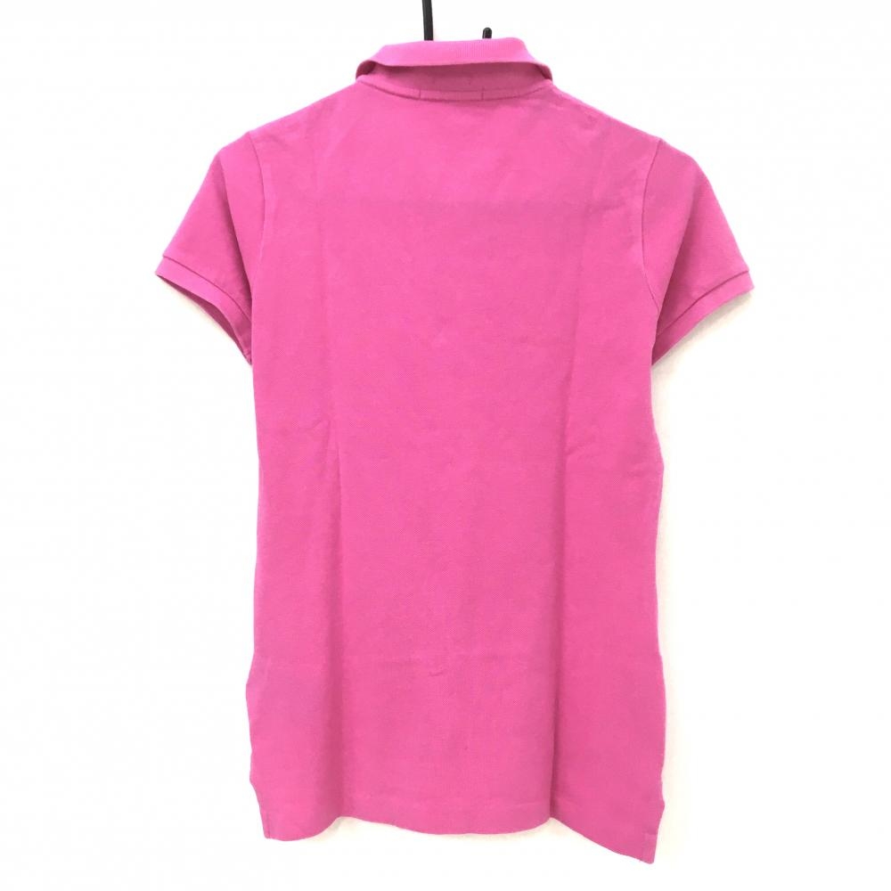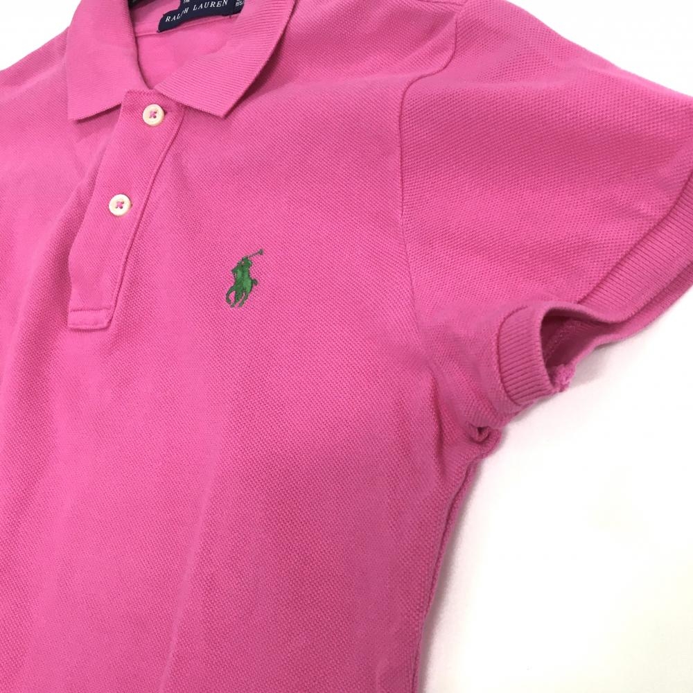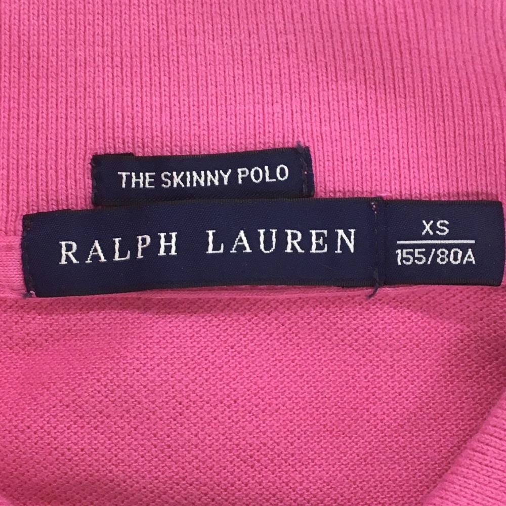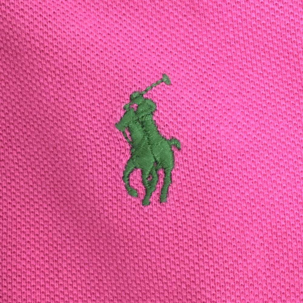 ラルフローレン 半袖ポロシャツ ピンク×グリーン ロゴ刺しゅう ポニー THE SKINNY POLO レディース XS ゴルフウェア Ralph Lauren