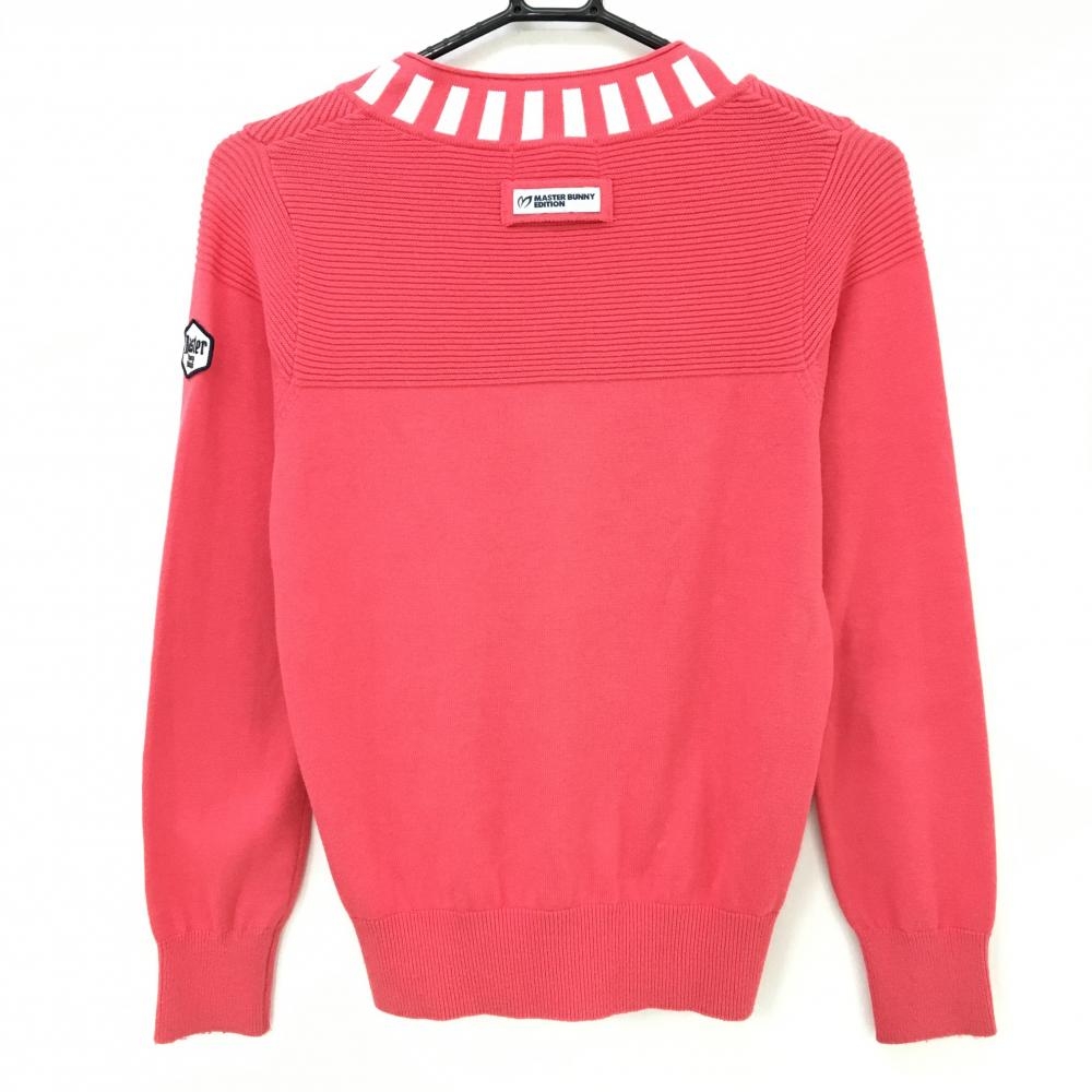 マスターバニー セーター ピンク×白 Vネック ニット 胸汚れ、腹部・袖口毛羽立ち レディース 0 ゴルフウェア MASTER BUNNY EDITION