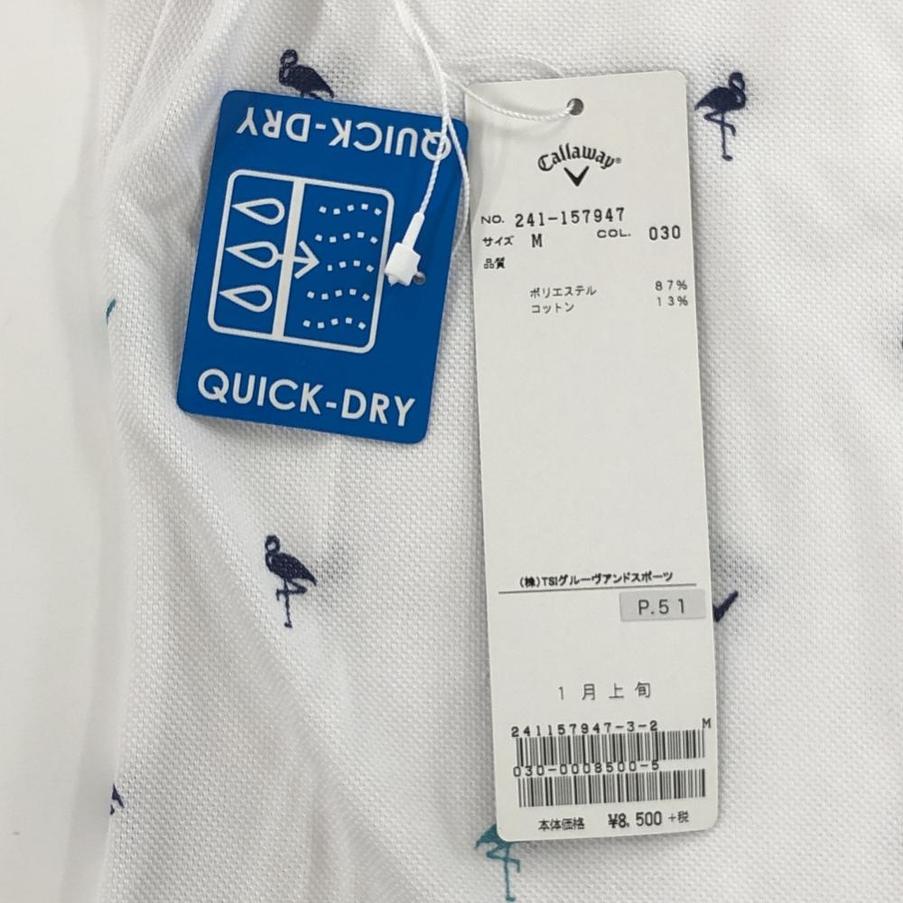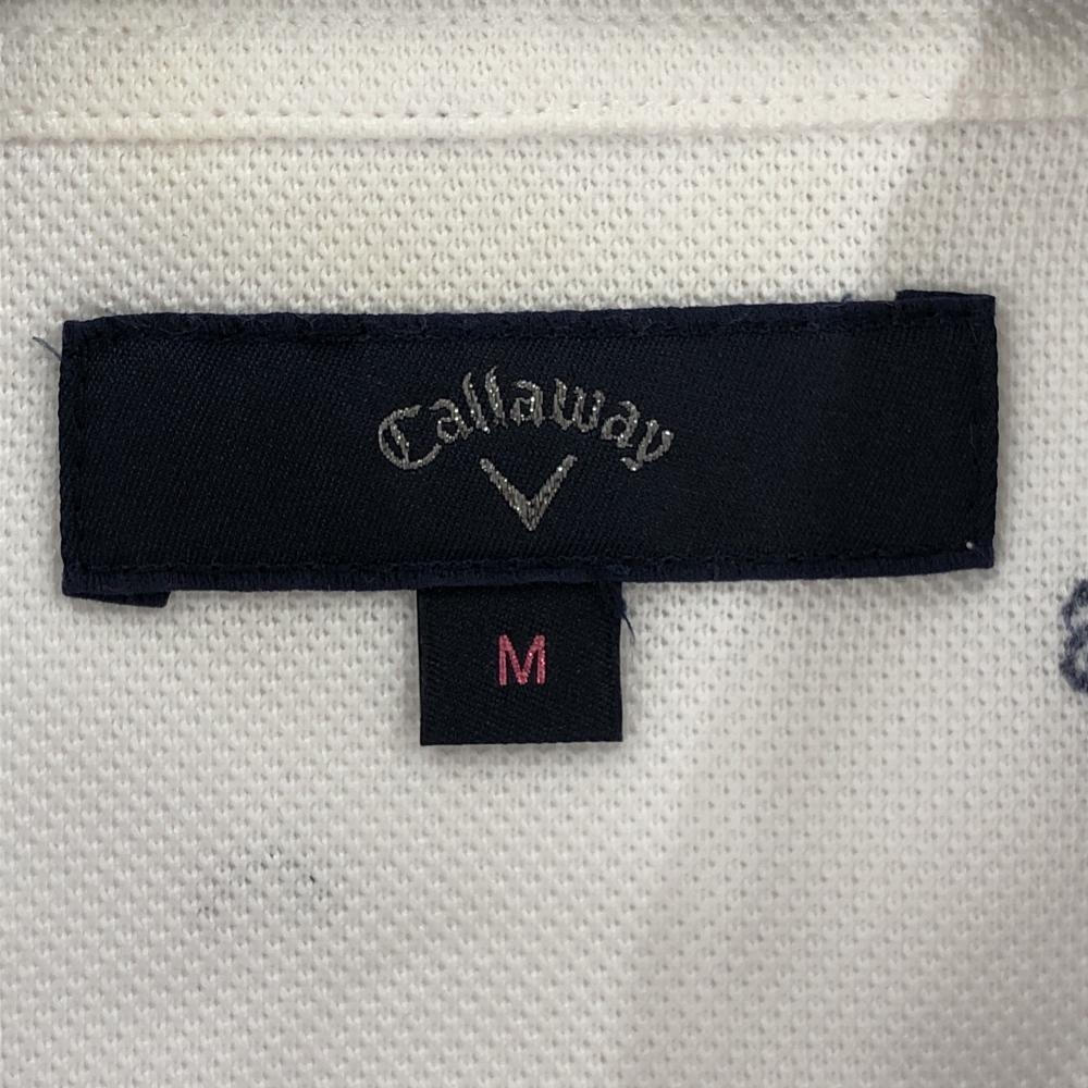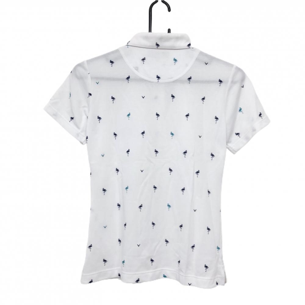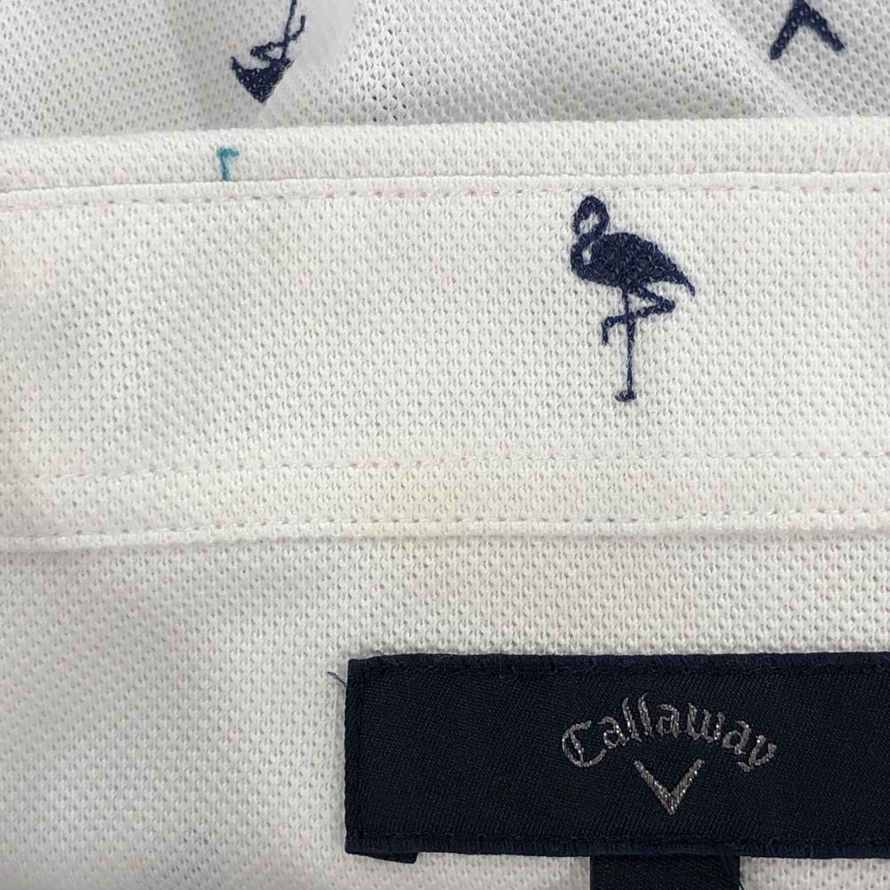 キャロウェイ 半袖ポロシャツ 白×ネイビー フラミンゴ柄 胸ポケット ボタンダウン レディース M ゴルフウェア サンプル品 Callaway