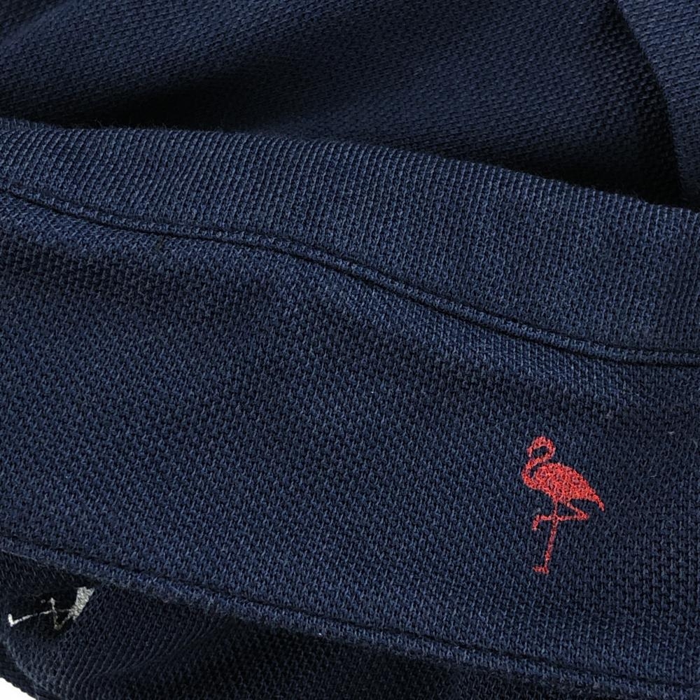 【美品】キャロウェイ 半袖ポロシャツ ネイビー×白 フラミンゴ柄 胸ポケット ボタンダウン レディース M ゴルフウェア Callaway
