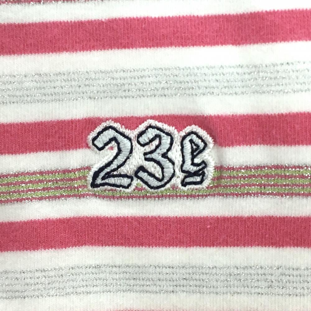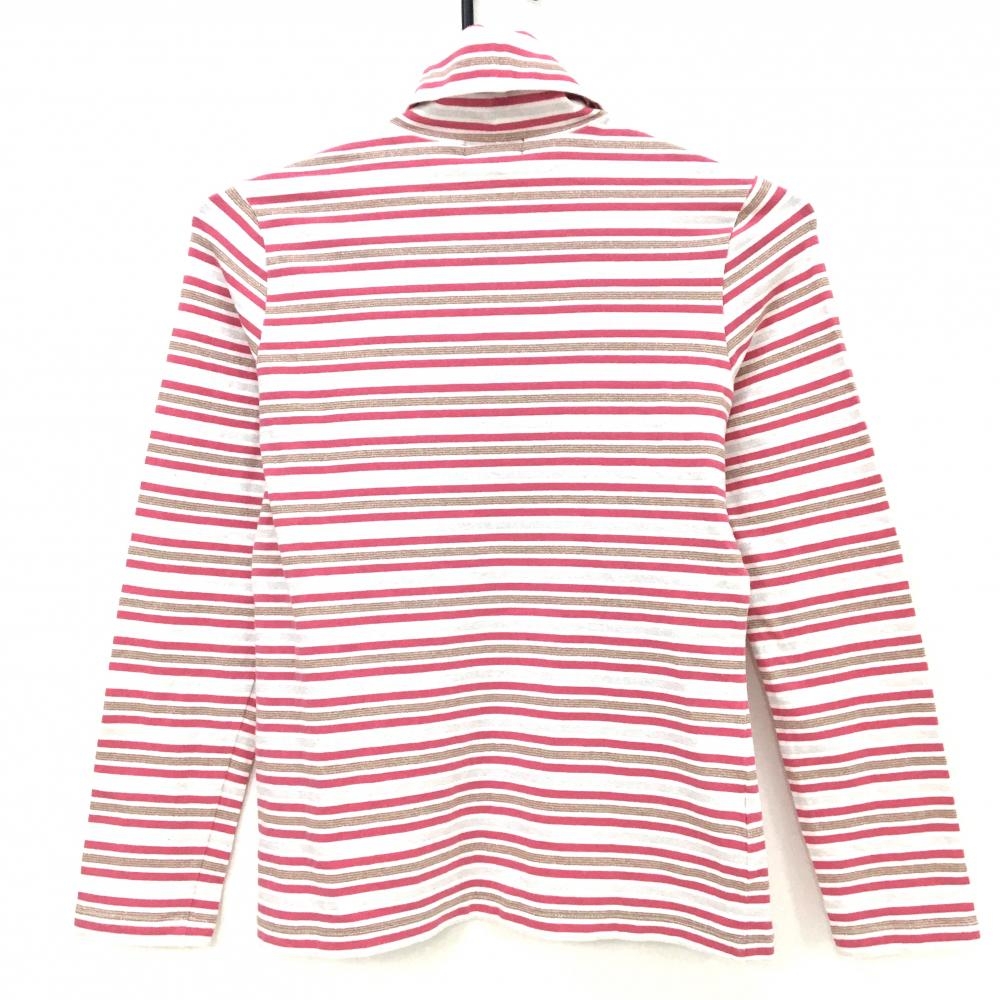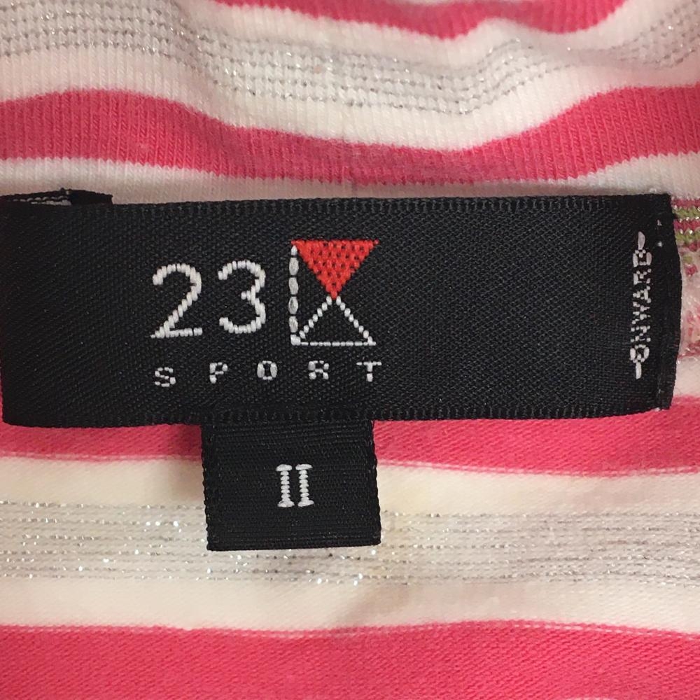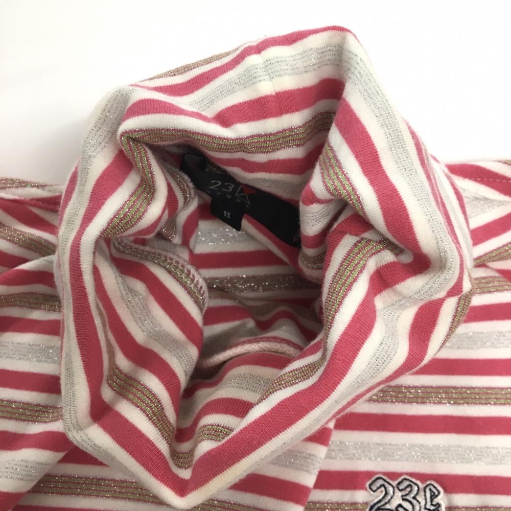 23区スポーツ 長袖ハイネックシャツ 白×ピンク ボーダー ラメ ロゴ刺しゅう レディース Ⅱ(L) ゴルフウェア 23区