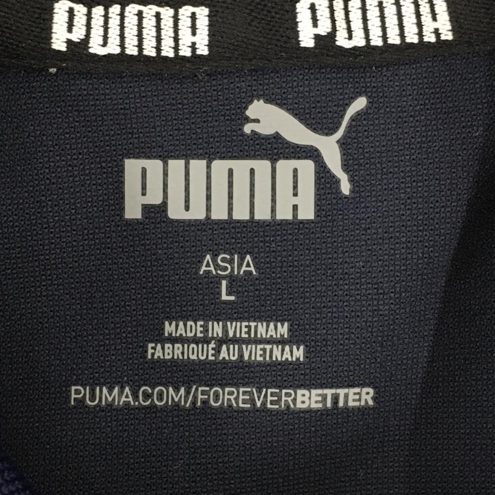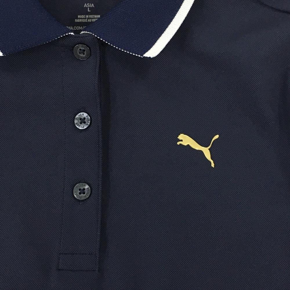 【超美品】プーマ 半袖ポロシャツ ネイビー×白 ロゴゴールド レディース L ゴルフウェア PUMA