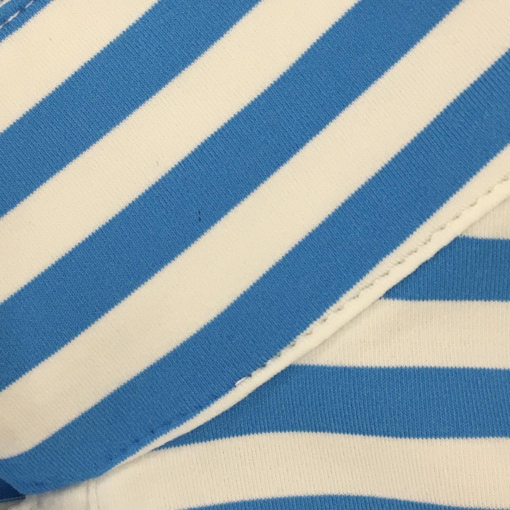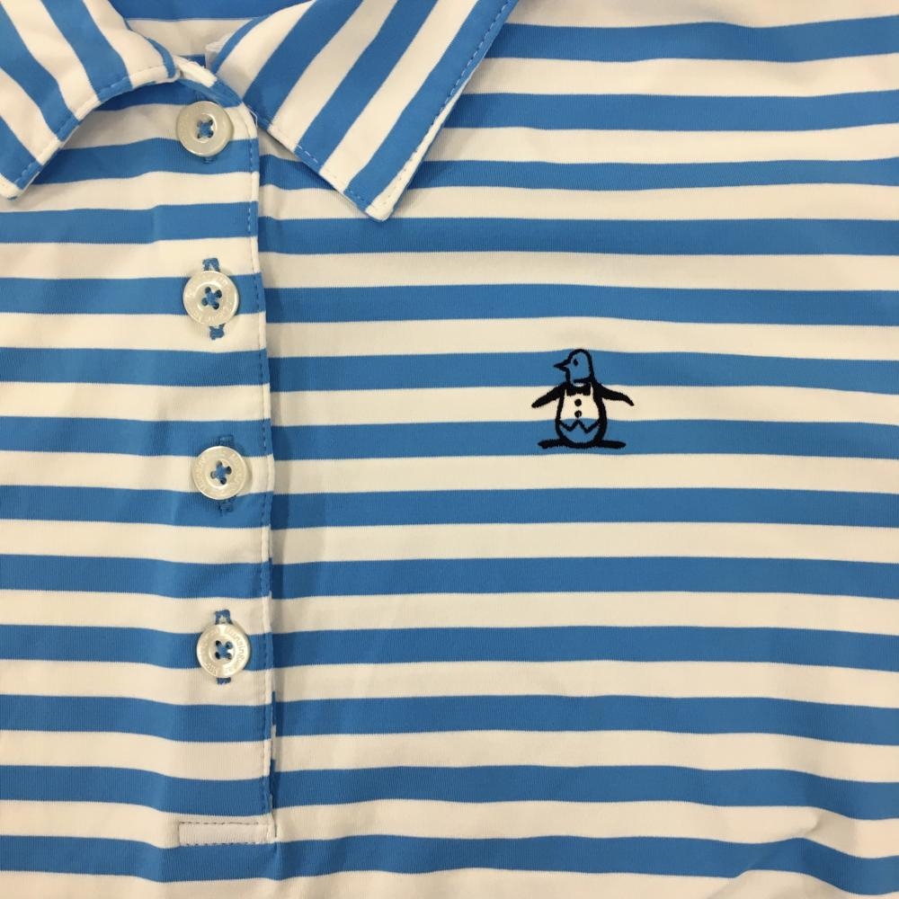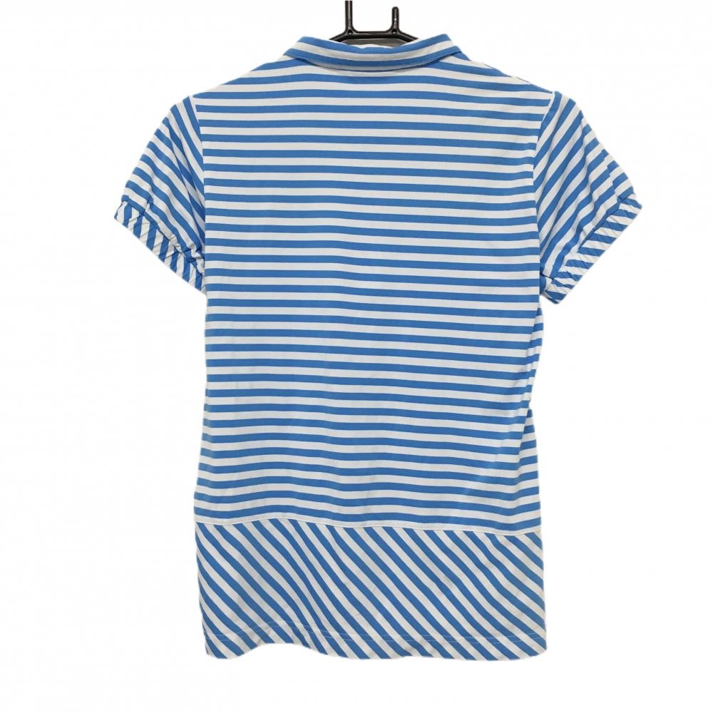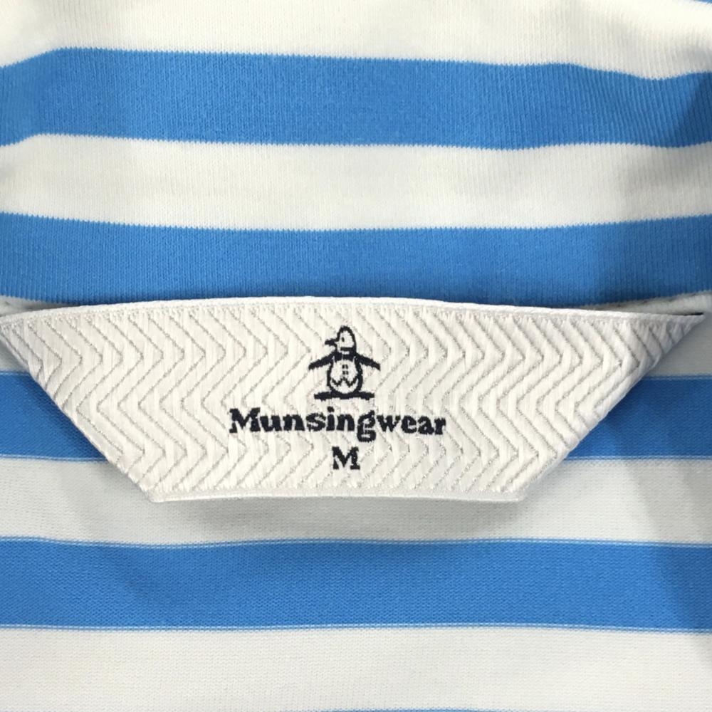 【美品】マンシングウェア 半袖ポロシャツ ライトブルー×白 ボーダー 袖口ゴム レディース M ゴルフウェア サンプル品 Munsingwear